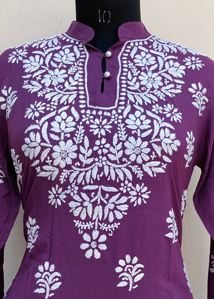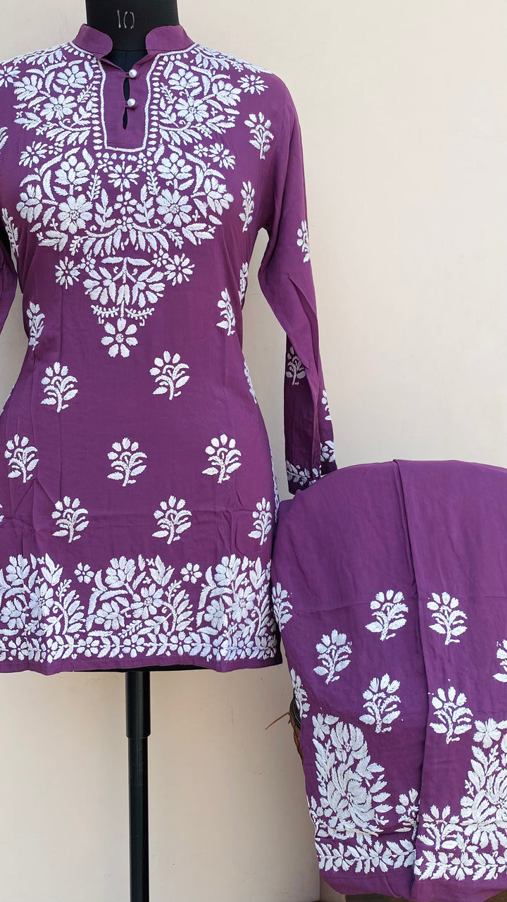 Lucknowi Chikankari Co-ord Set Purple Muslin Cotton