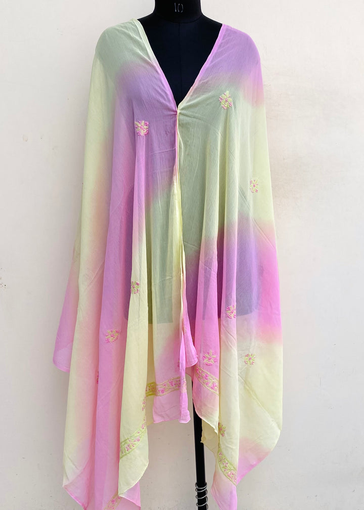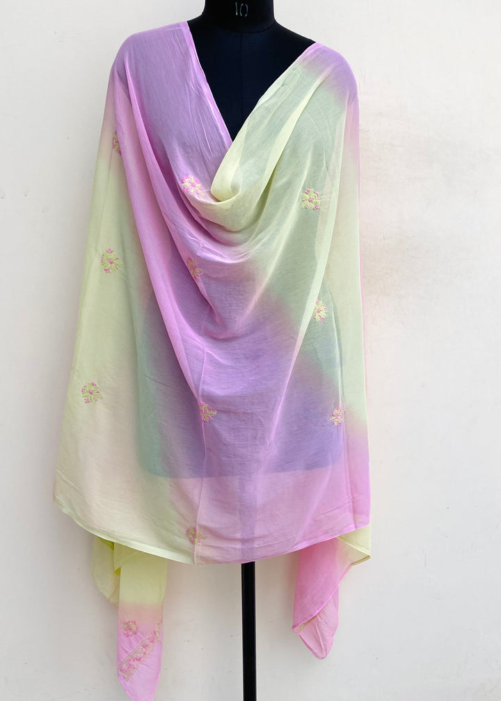 Lucknowi Chikankari Dupatta Multicolour Chiffon