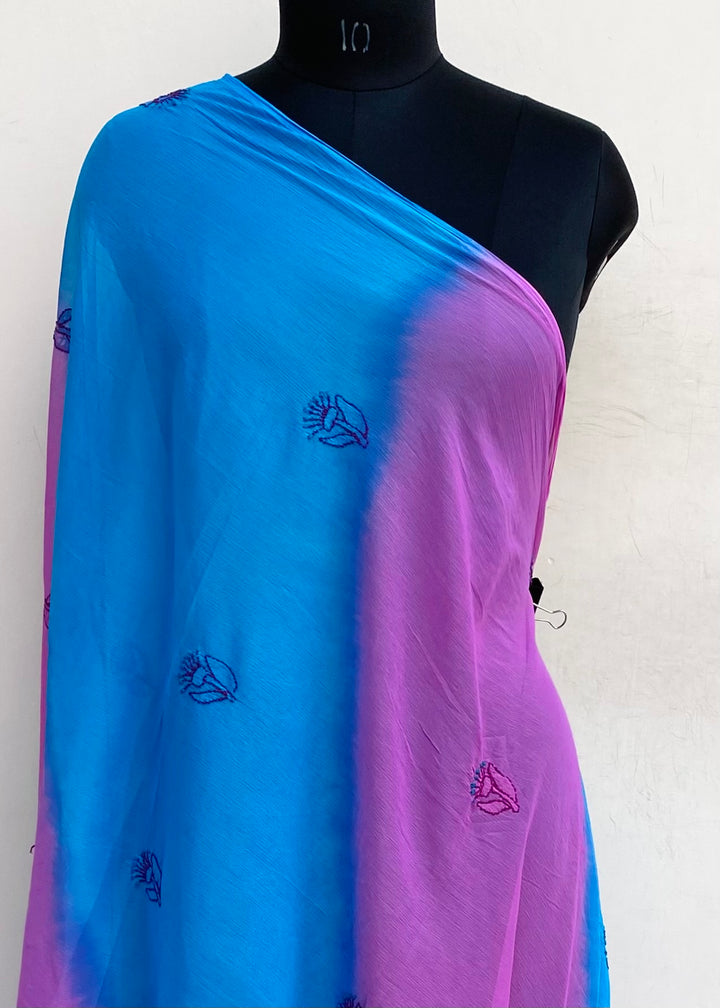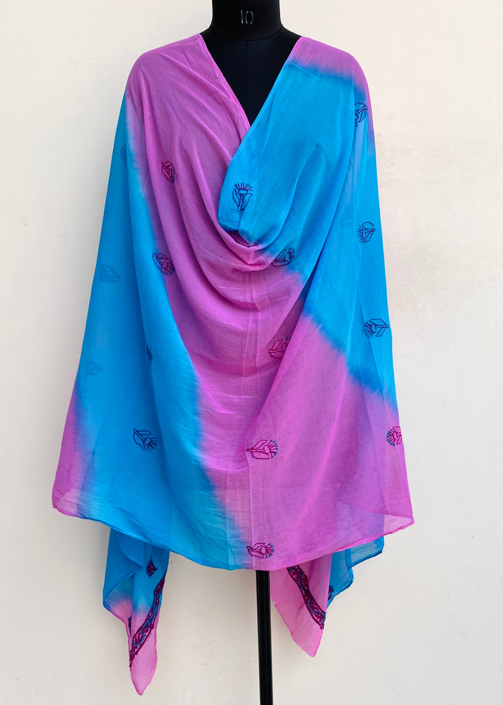 Lucknowi Chikankari Dupatta Multicolour Chiffon
