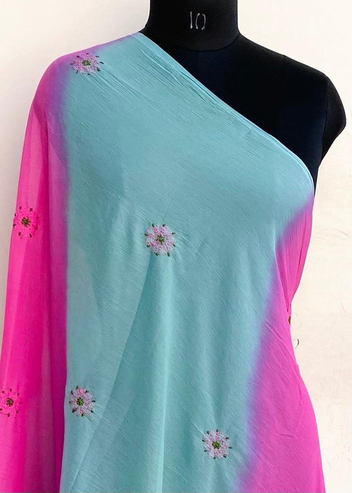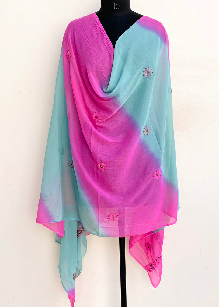 Lucknowi Chikankari Dupatta Multicolour Chiffon