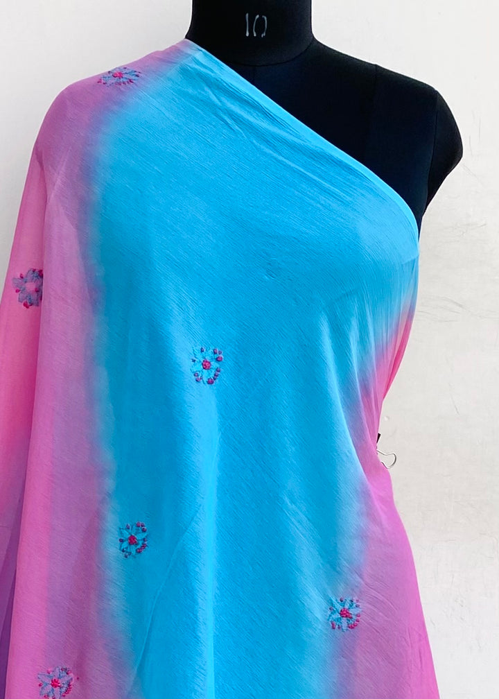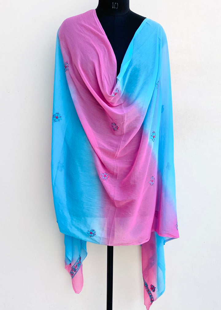 Lucknowi Chikankari Dupatta Multicolour Chiffon
