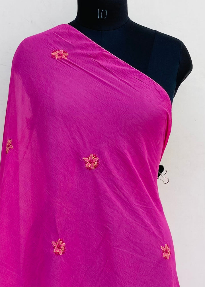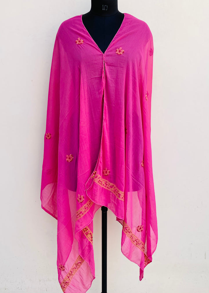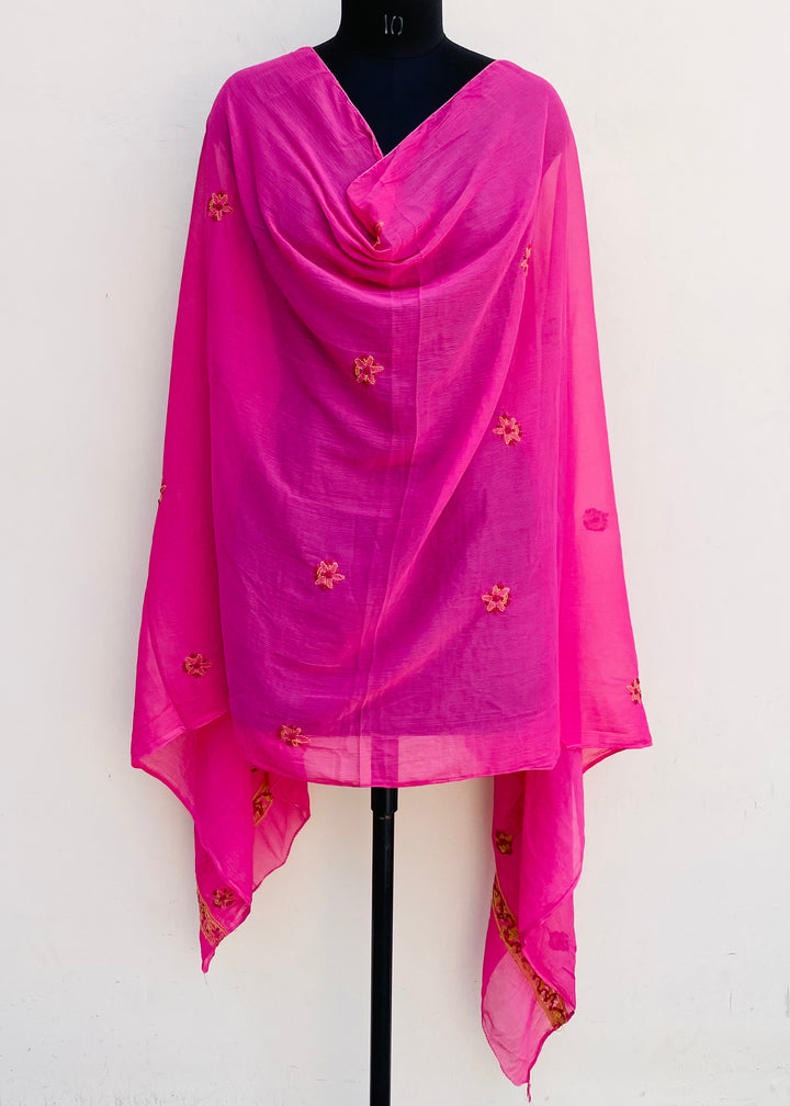 Lucknowi Chikankari Dupatta Pink Chiffon