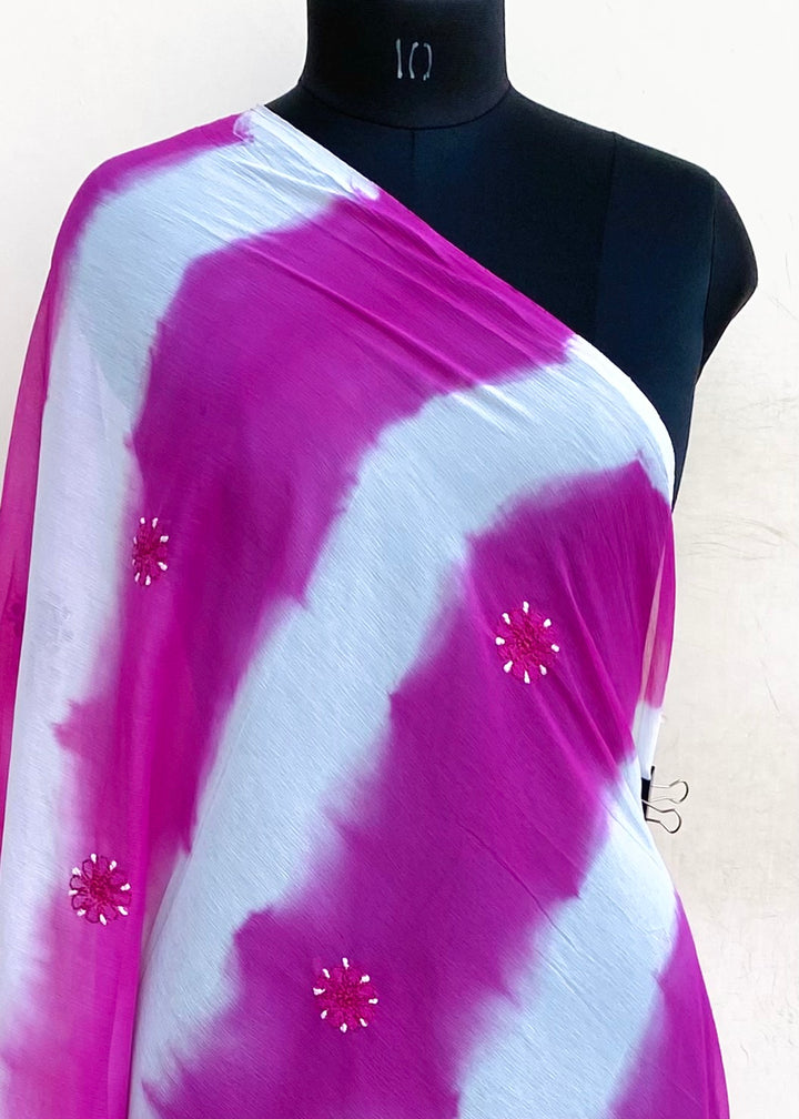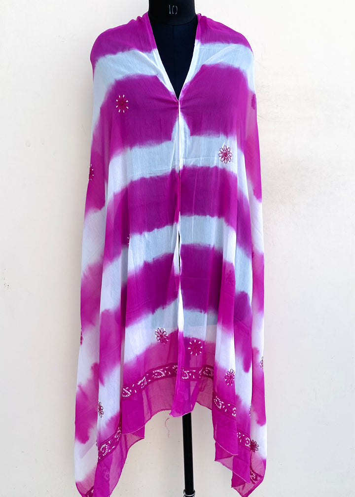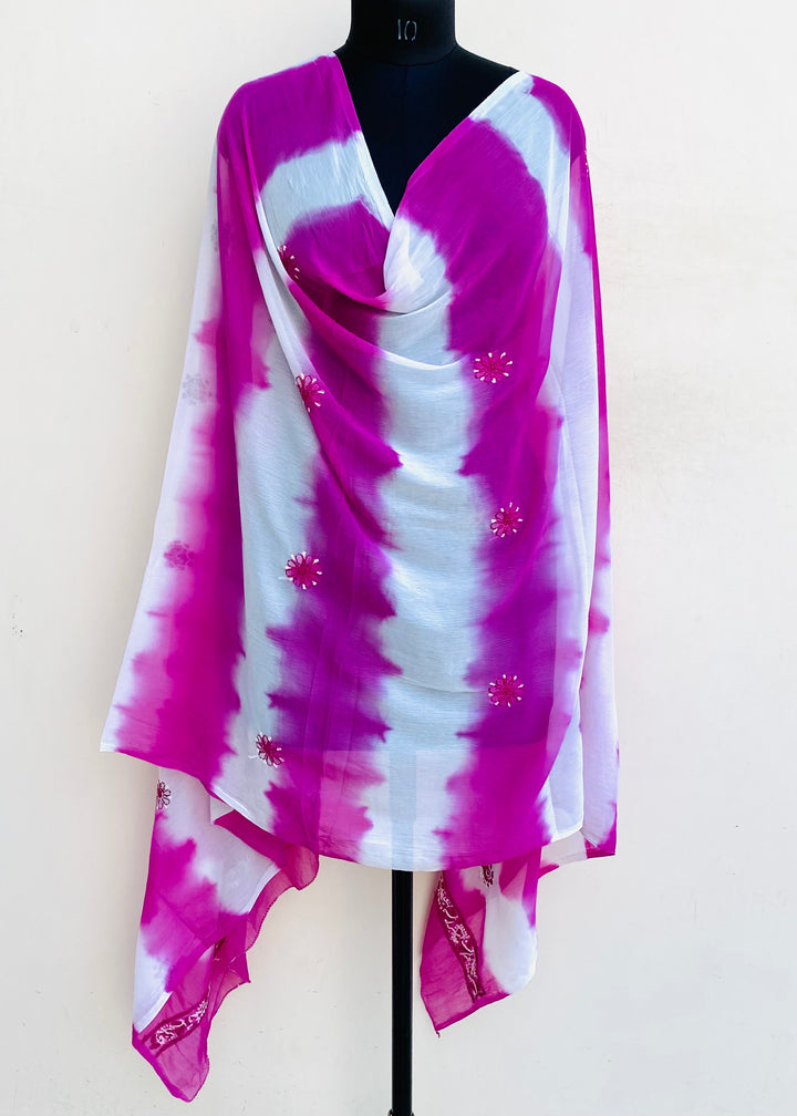 Lucknowi Chikankari Dupatta Pink Chiffon