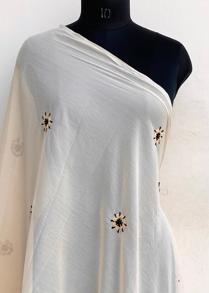 Lucknowi Chikankari Dupatta Skin Colour Chiffon