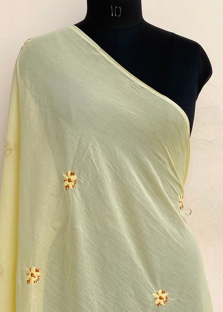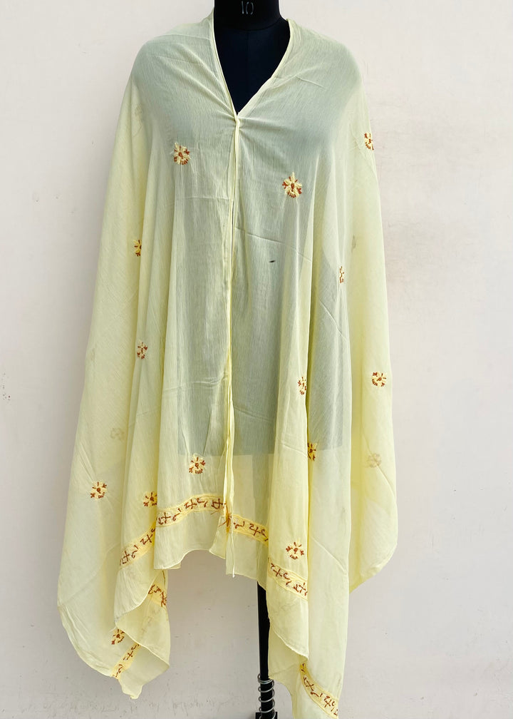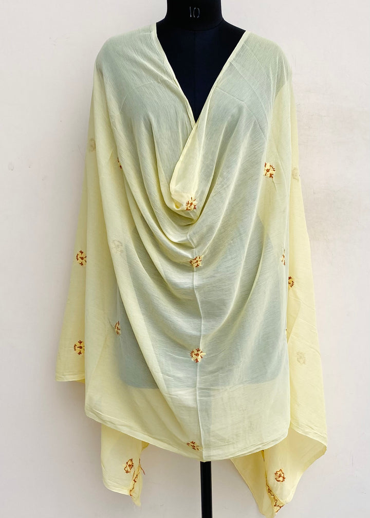 Lucknowi Chikankari Dupatta Yellow Chiffon