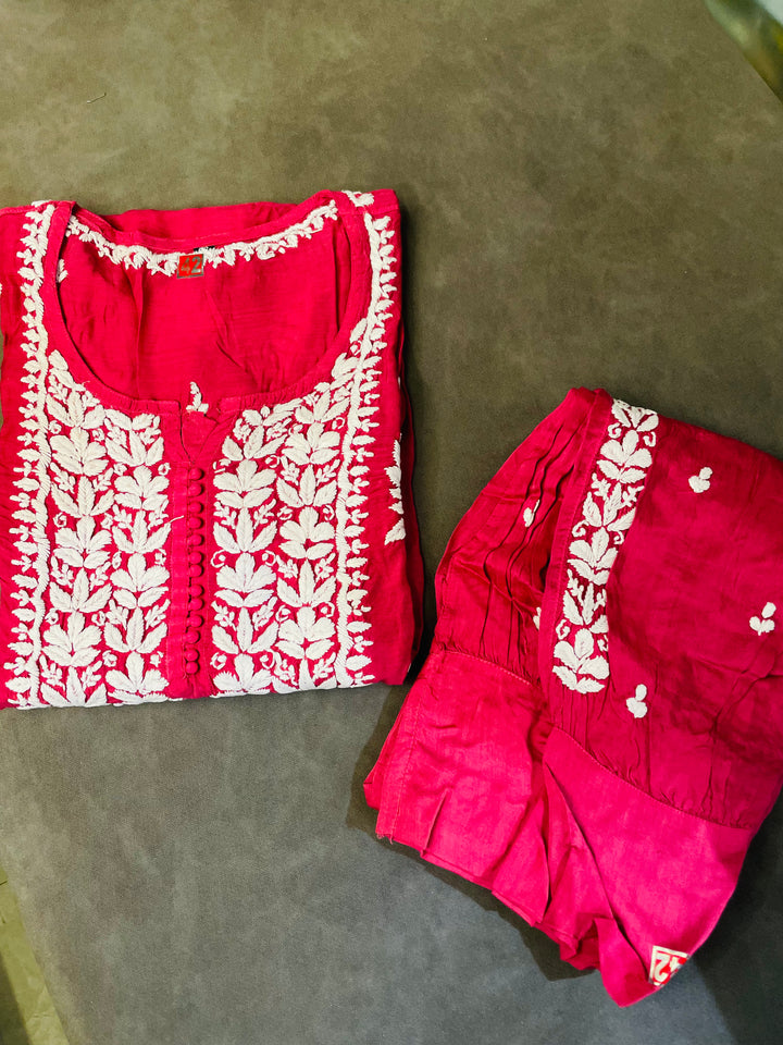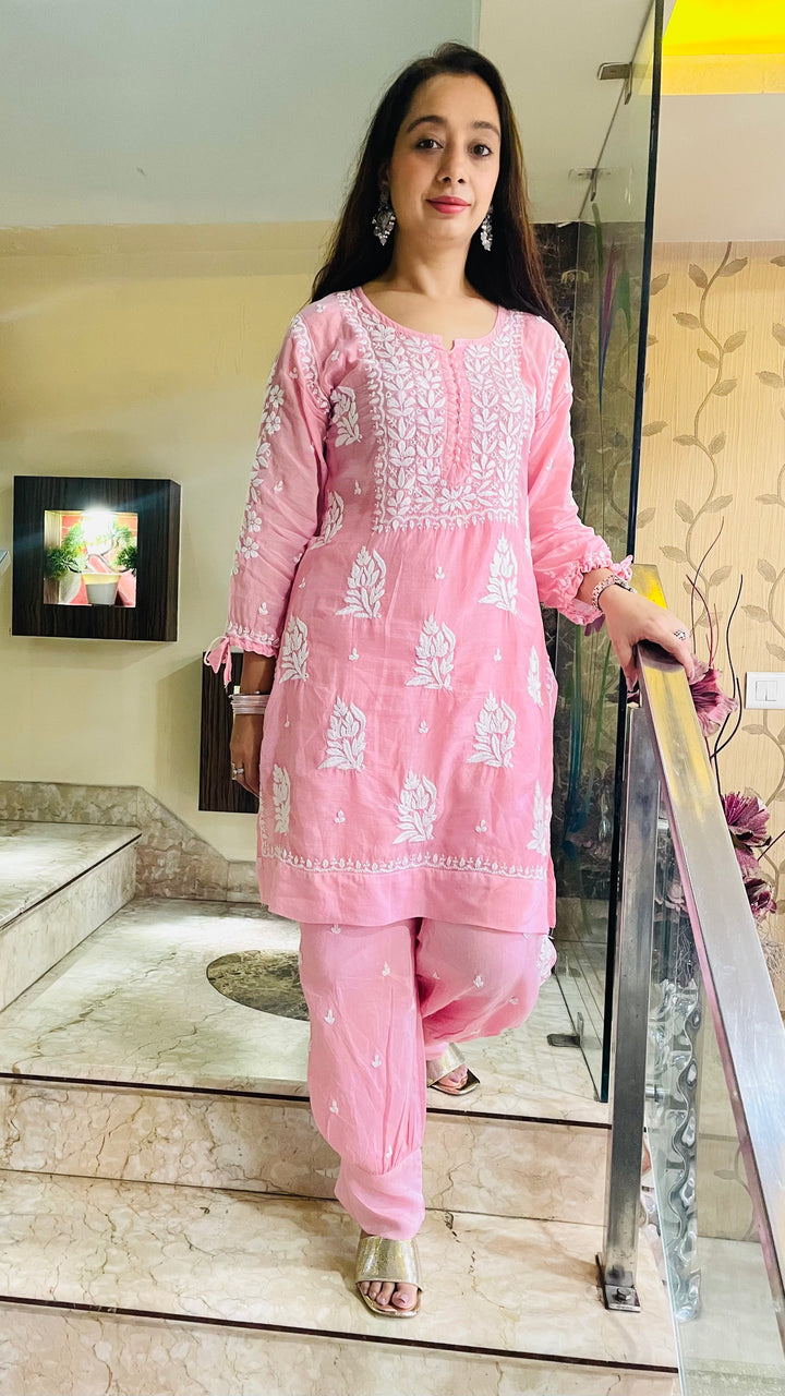 Lucknowi Chikankari Farshi Salwar Co-ord Muslin Cotton