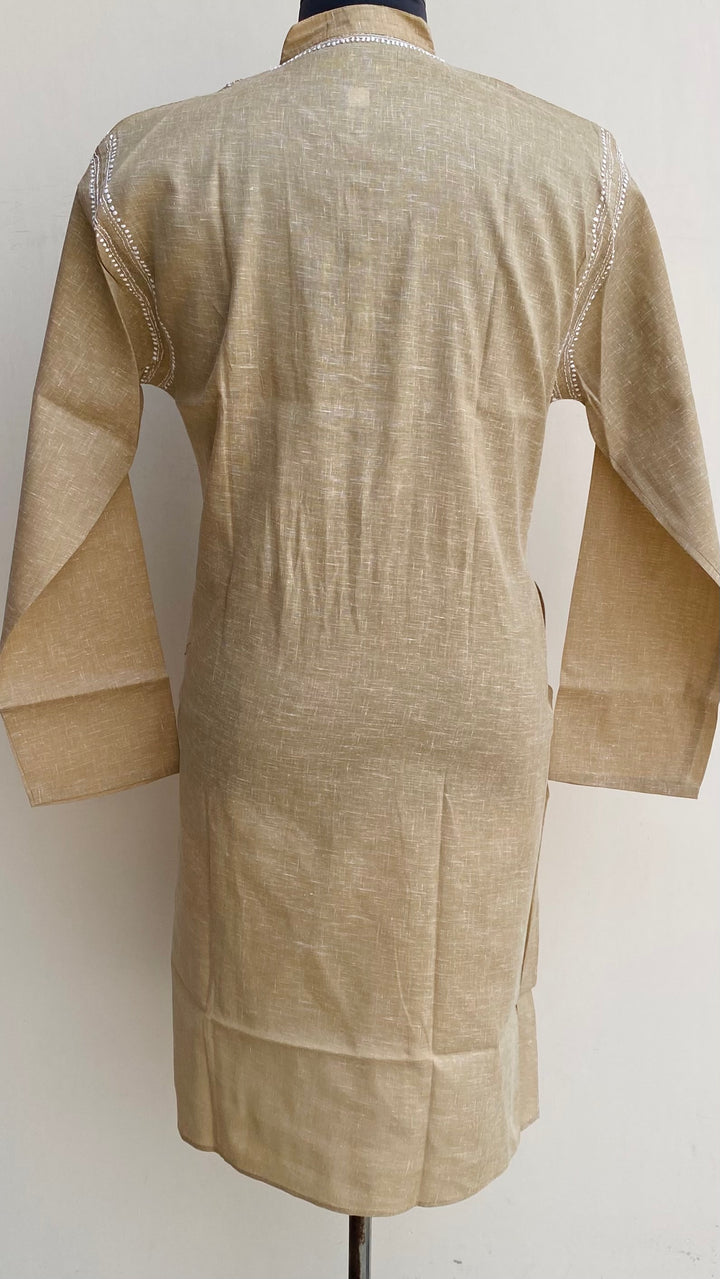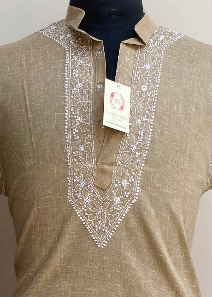 Lucknowi Chikankari Men's Kurta Beige Cotton