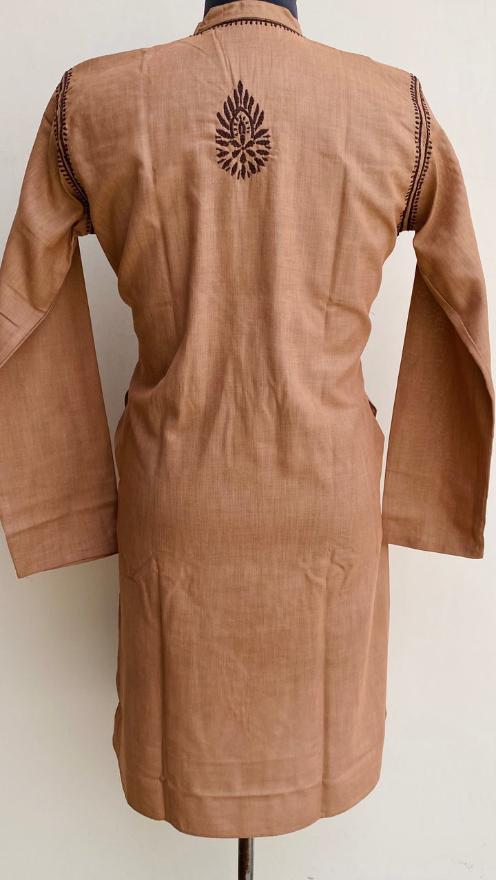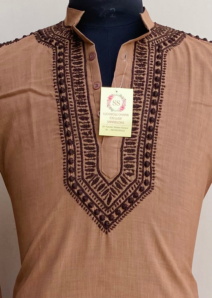 Lucknowi Chikankari Men's Kurta Brown Cotton