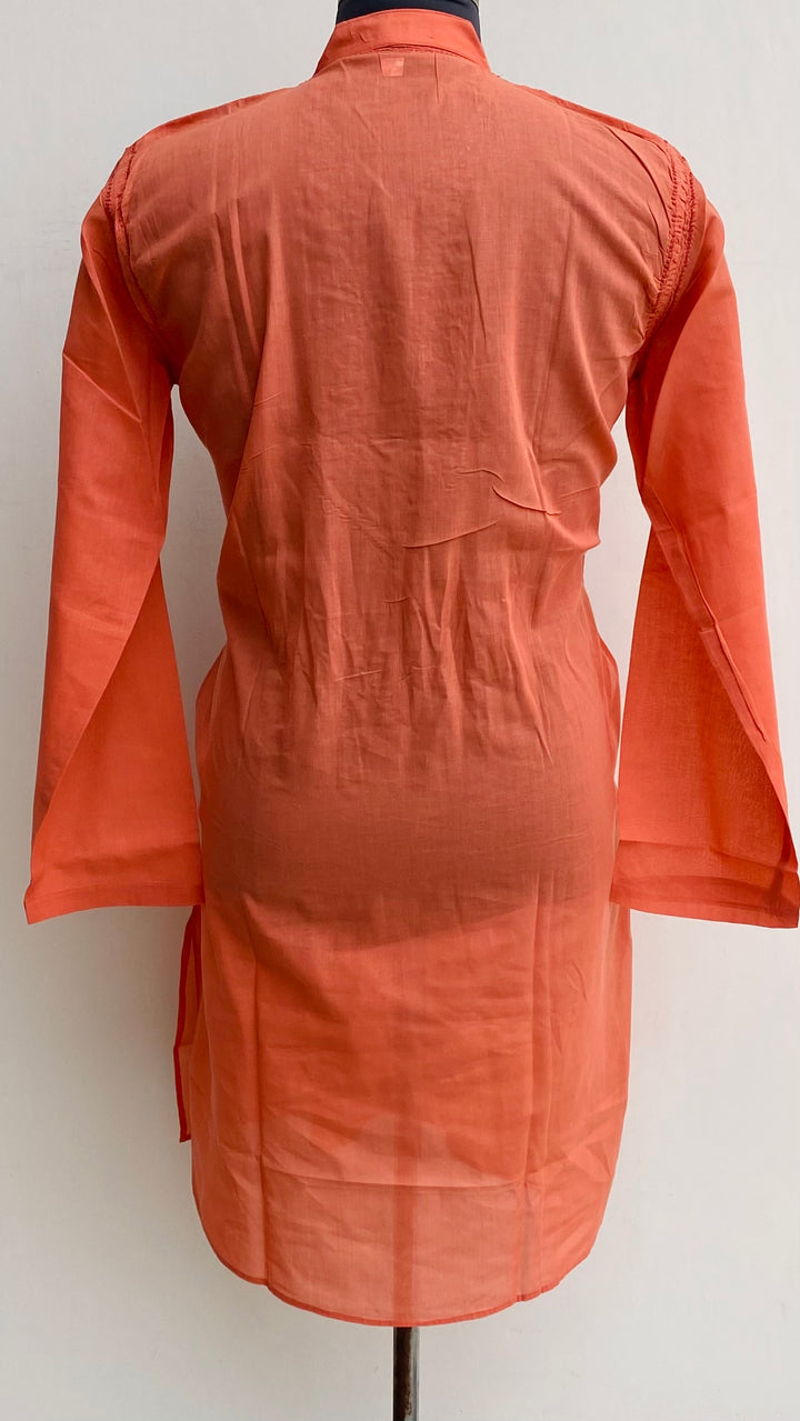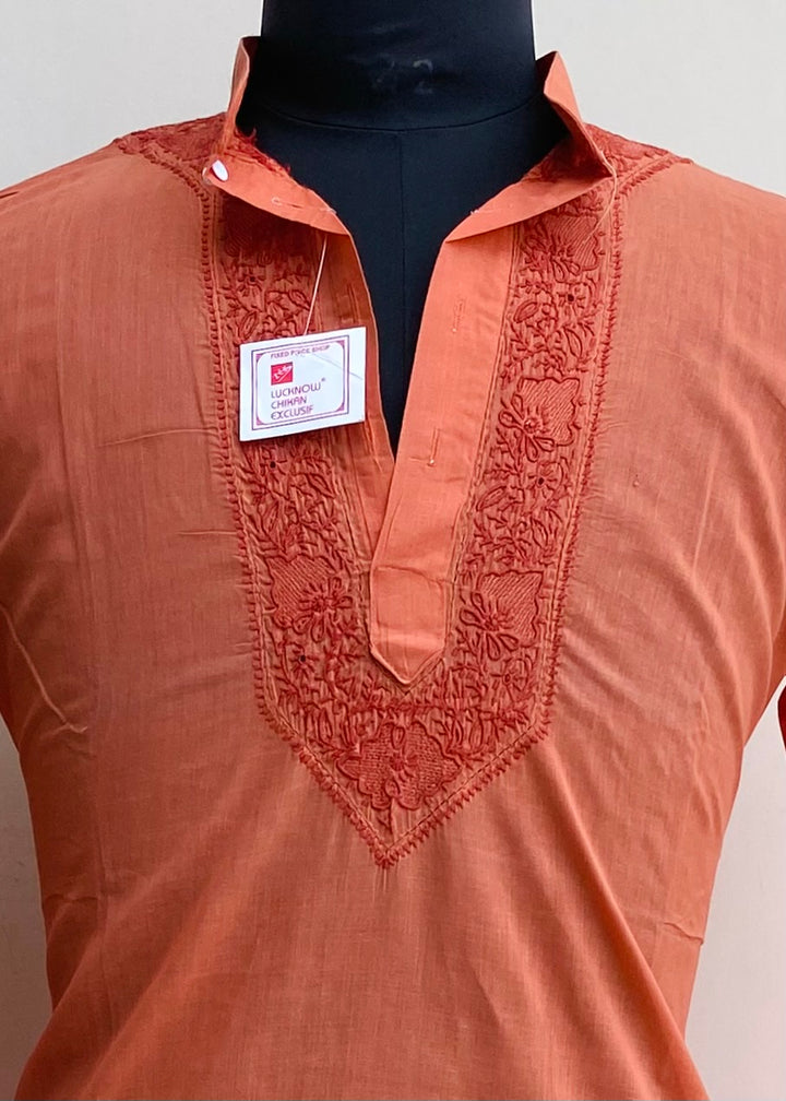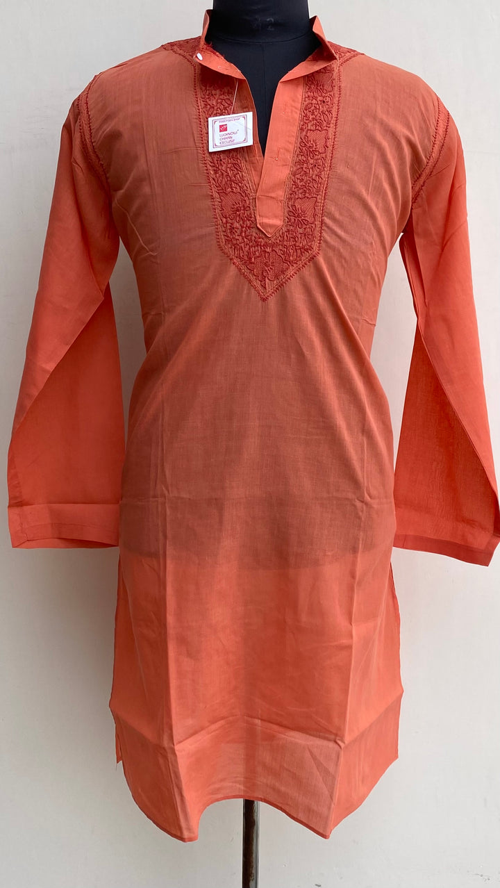 Lucknowi Chikankari Men’s Kurta Rust Cotton With Jaali Work