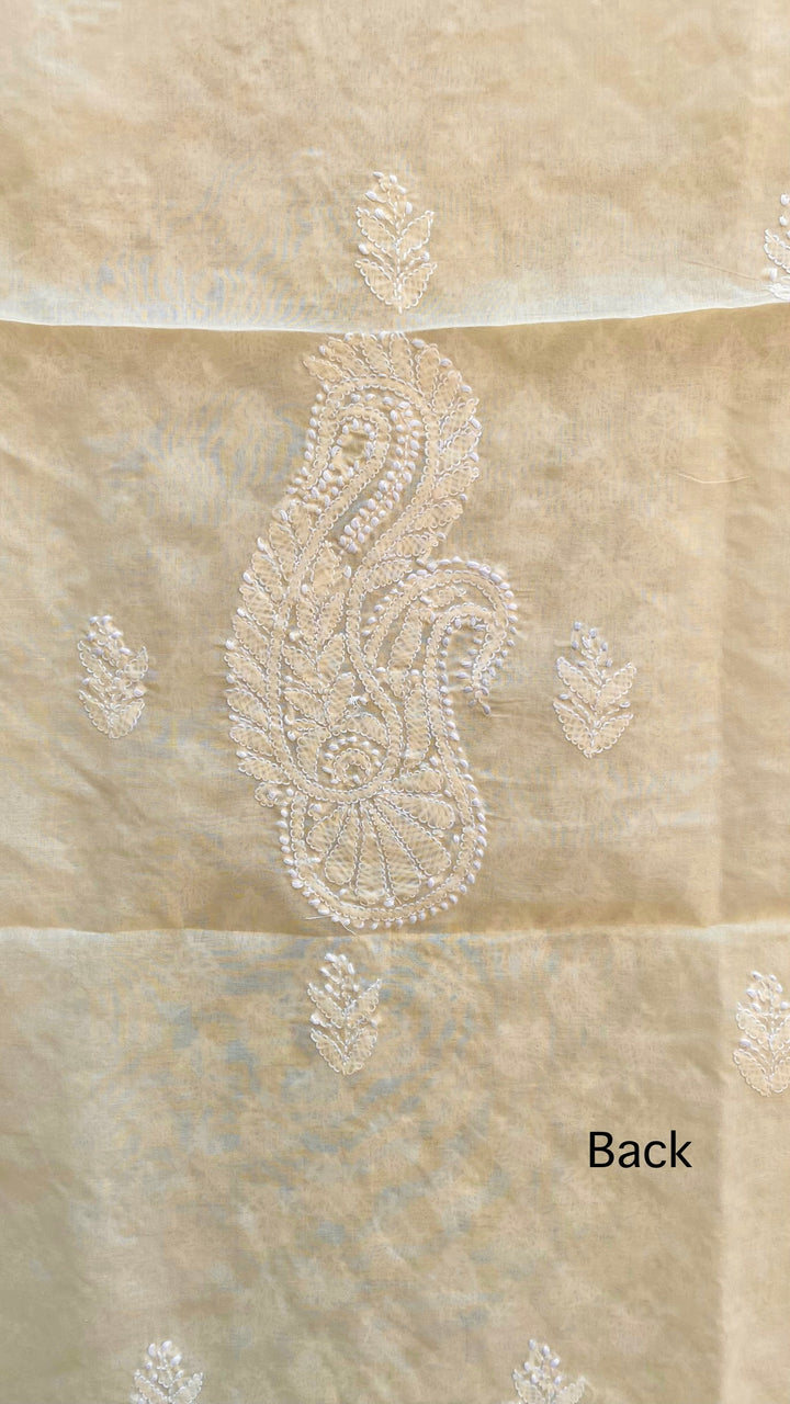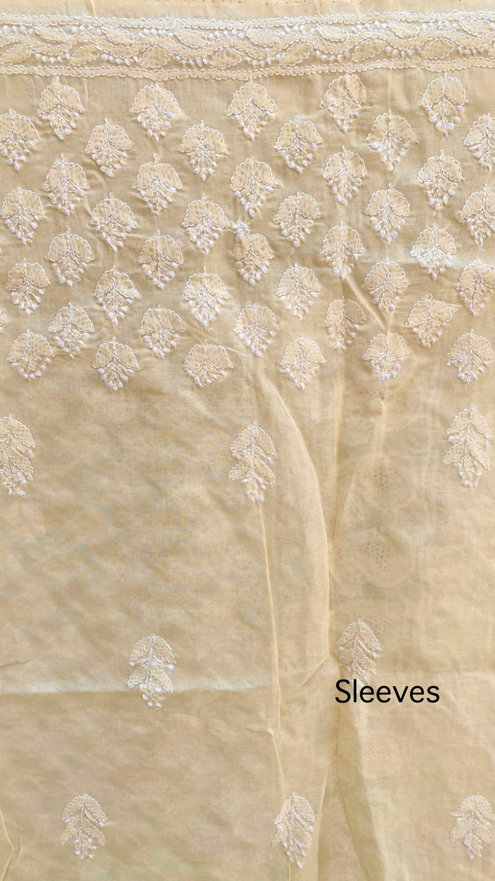 Lucknowi Chikankari Kurta Length Beige Cotton With Jaali Work