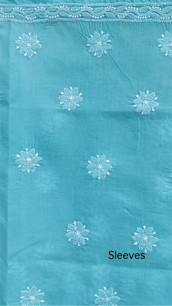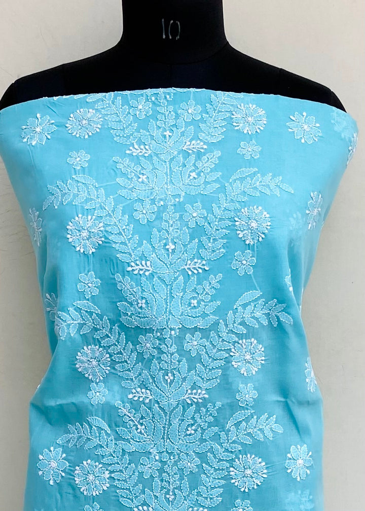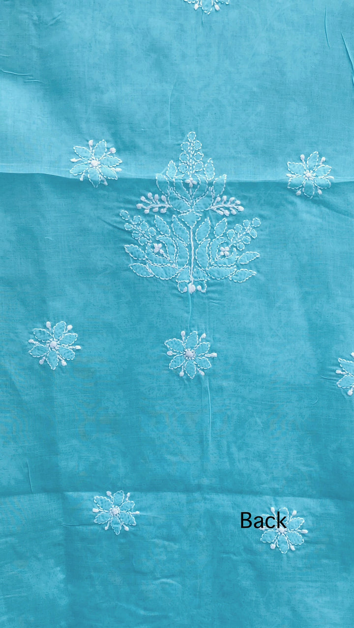 Lucknowi Chikankari Kurta Length Blue Cotton