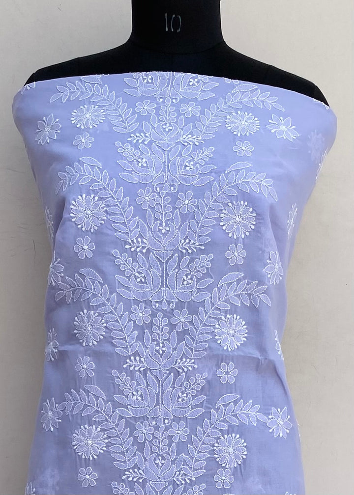 Lucknowi Chikankari Kurta Length Purple Cotton