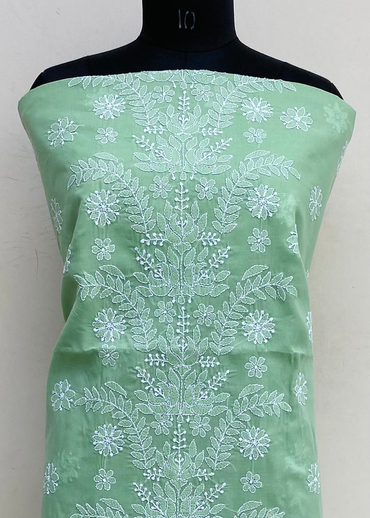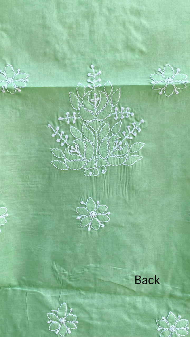 Lucknowi Chikankari Kurta Length Teal Green Cotton