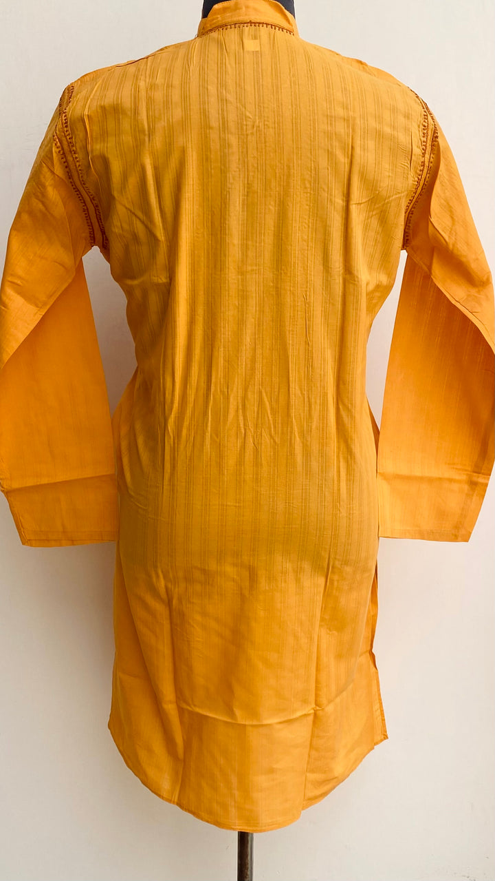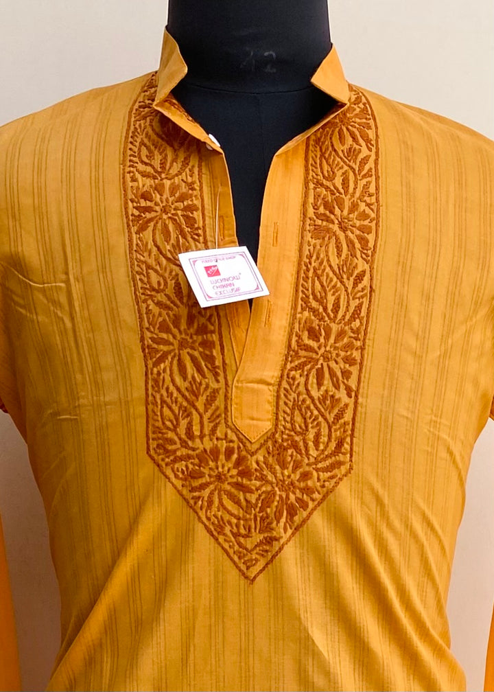 Lucknowi Chikankari Men's Kurta Mustard Cotton