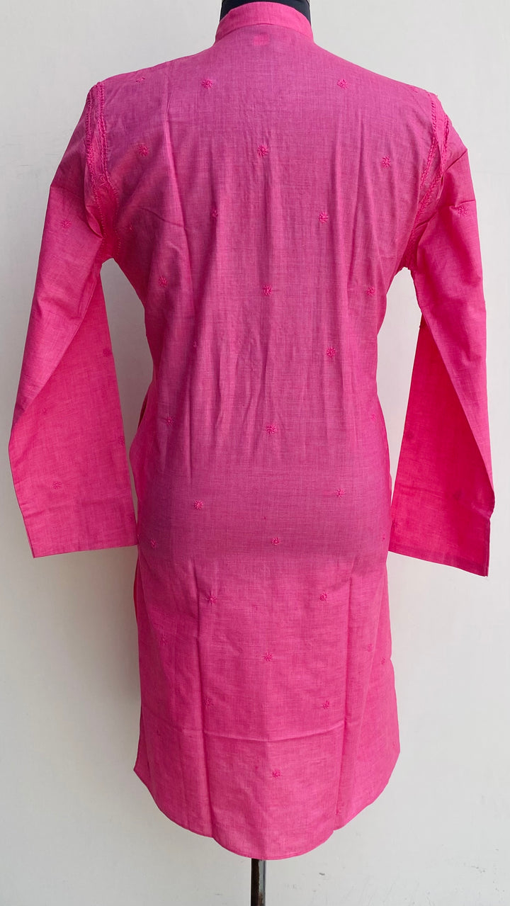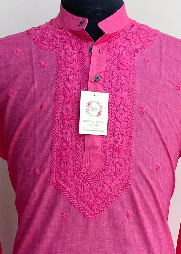 Lucknowi Chikankari Men's Kurta Pink Cotton