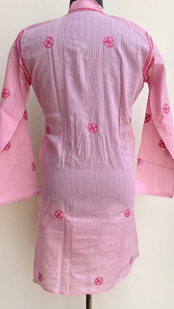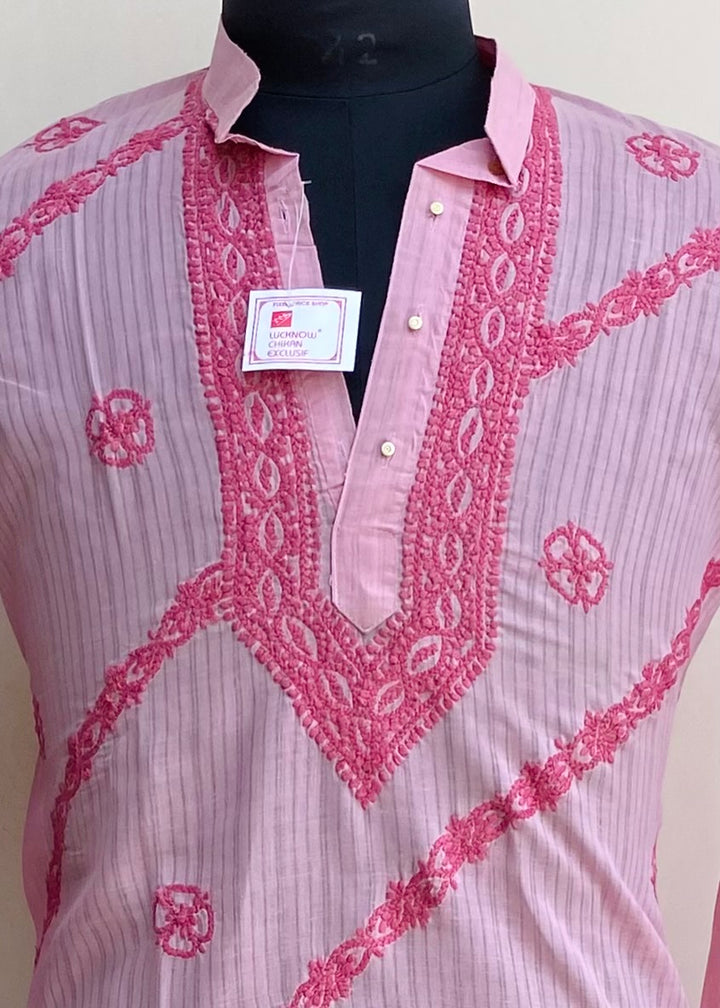 Lucknowi Chikankari Men’s Kurta Pink Cotton