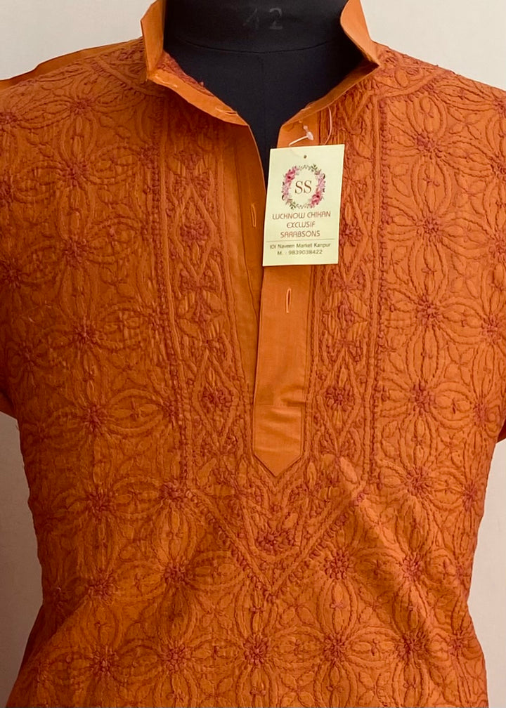 Lucknowi Chikankari Men’s Kurta Rust Cotton