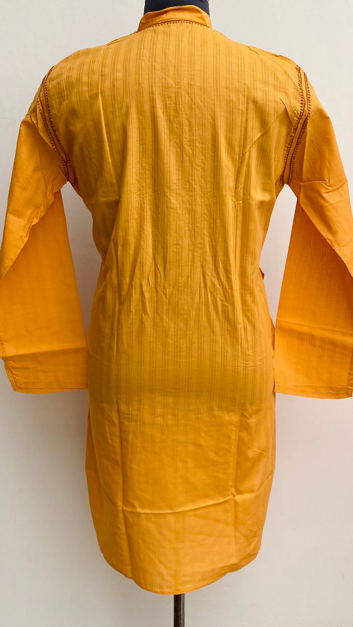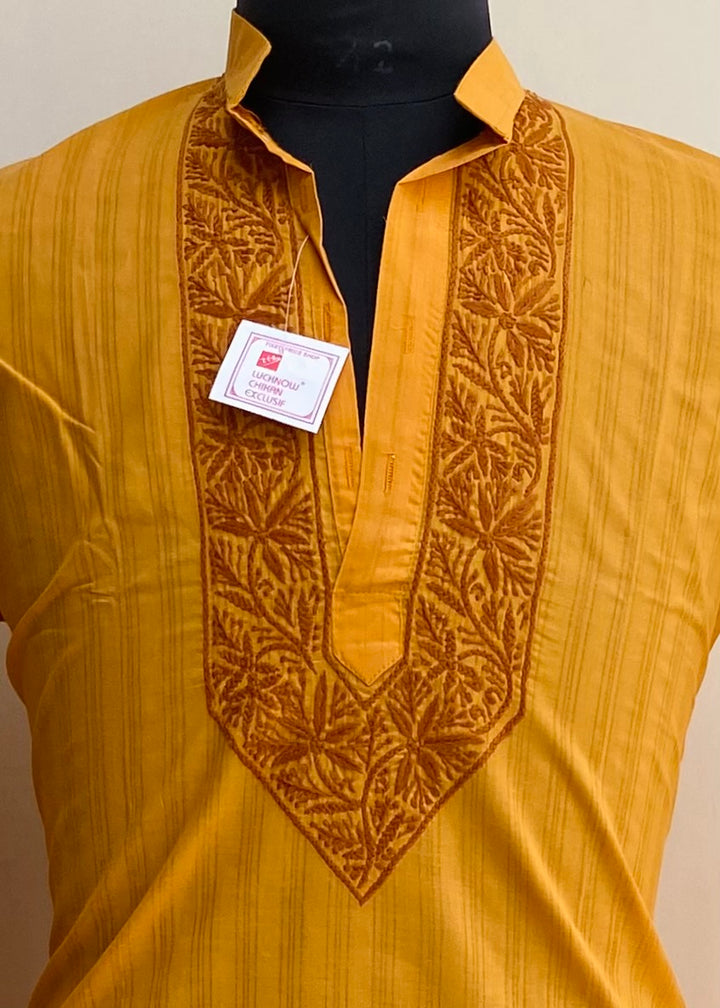 Lucknowi Chikankari Men’s Kurta Mustard Cotton