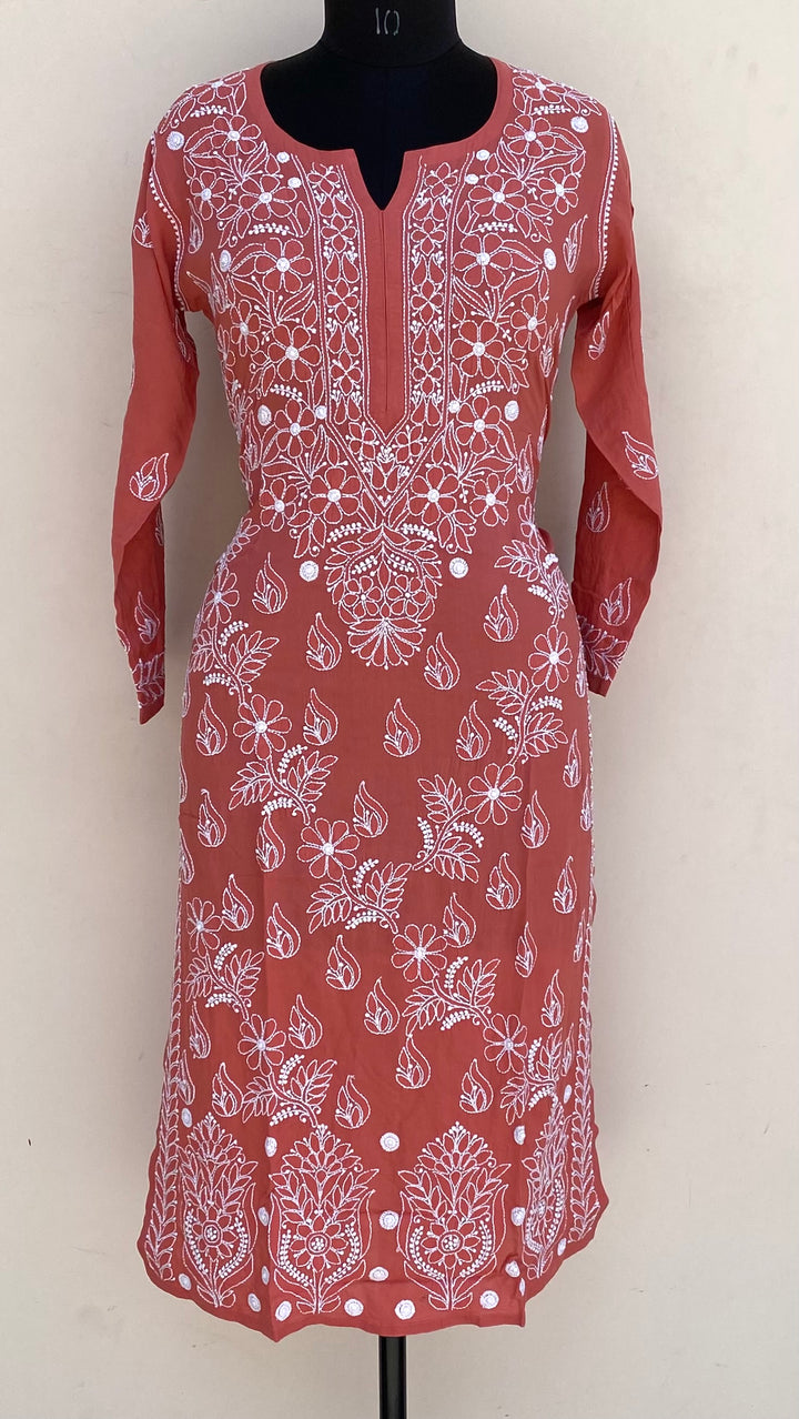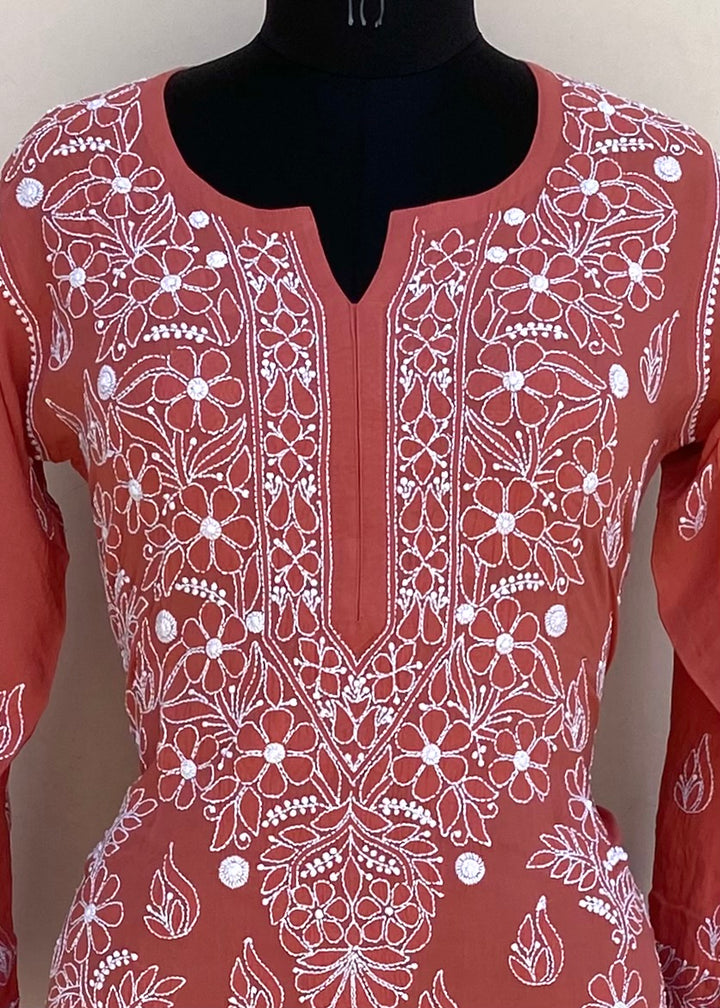 Lucknowi Chikankari Kurti Copper Muslin Cotton