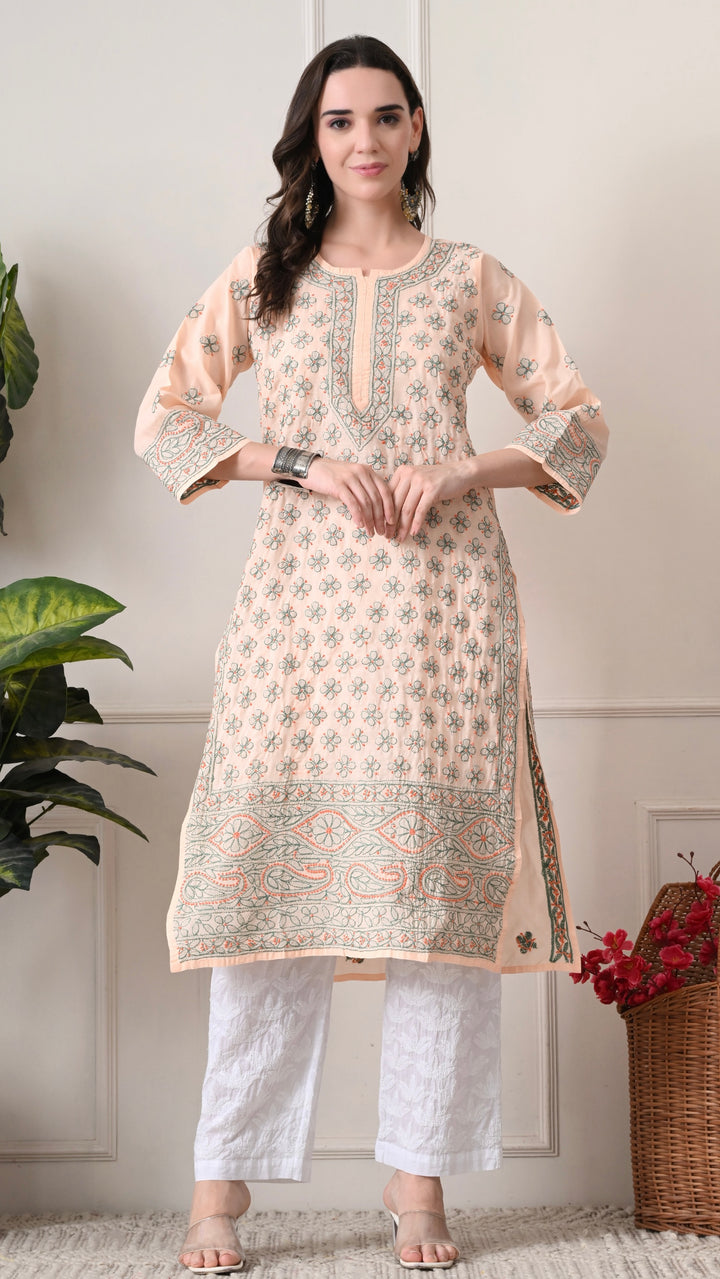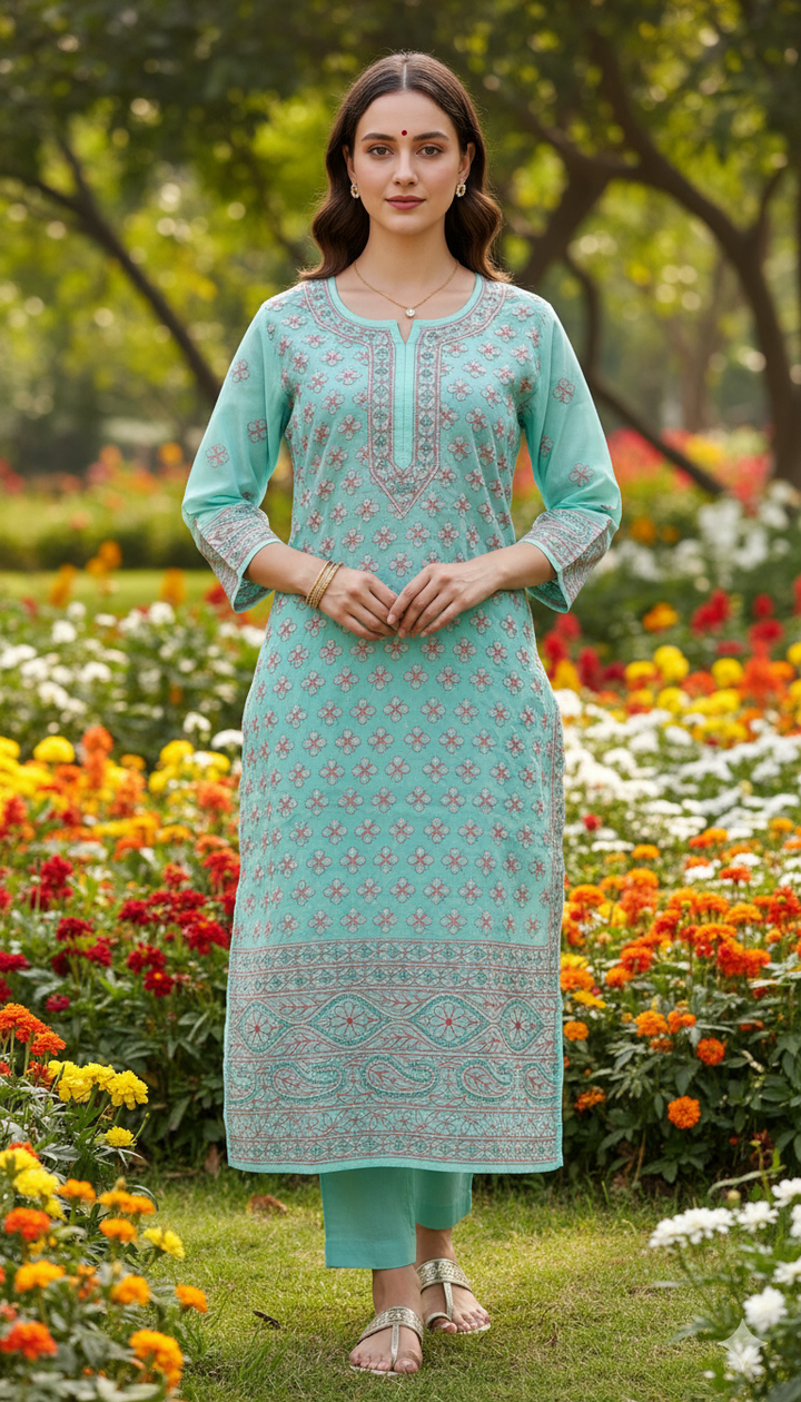 Peach, Pink, Gajri, Yellow, Green, Mustard, Purple, Gray, Brown, Sea Green, Blue |