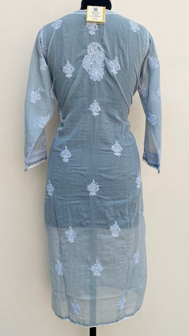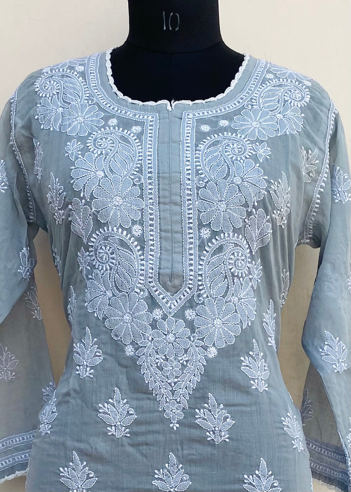 Lucknowi Chikankari Kurti Gray Mulmul Cotton