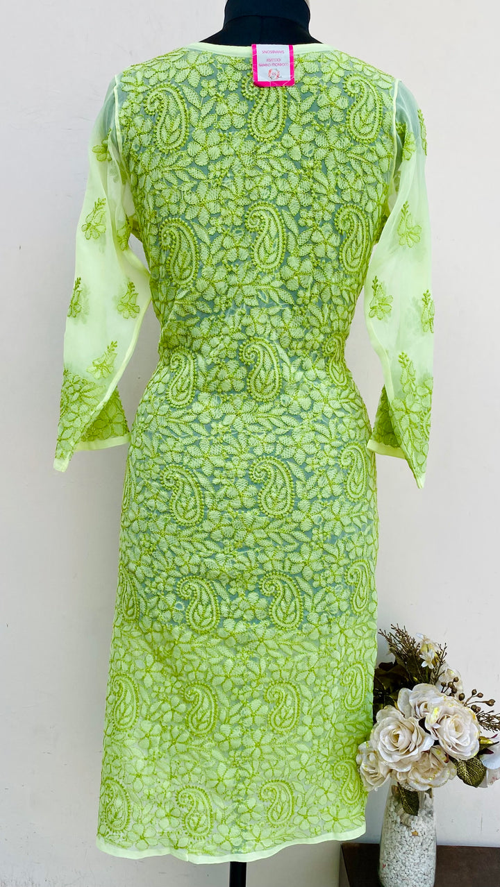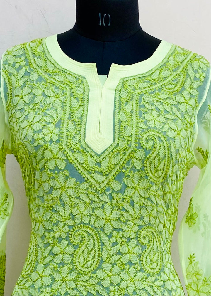 Lucknowi Chikankari Kurti Green Georgette