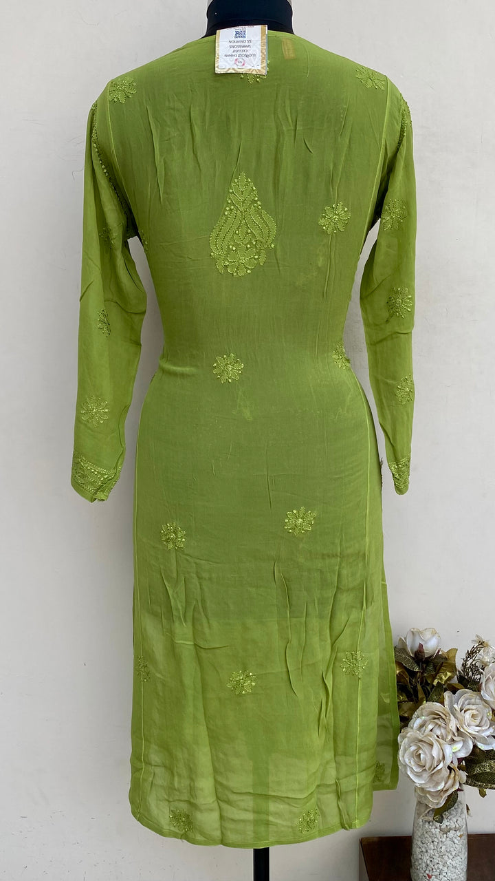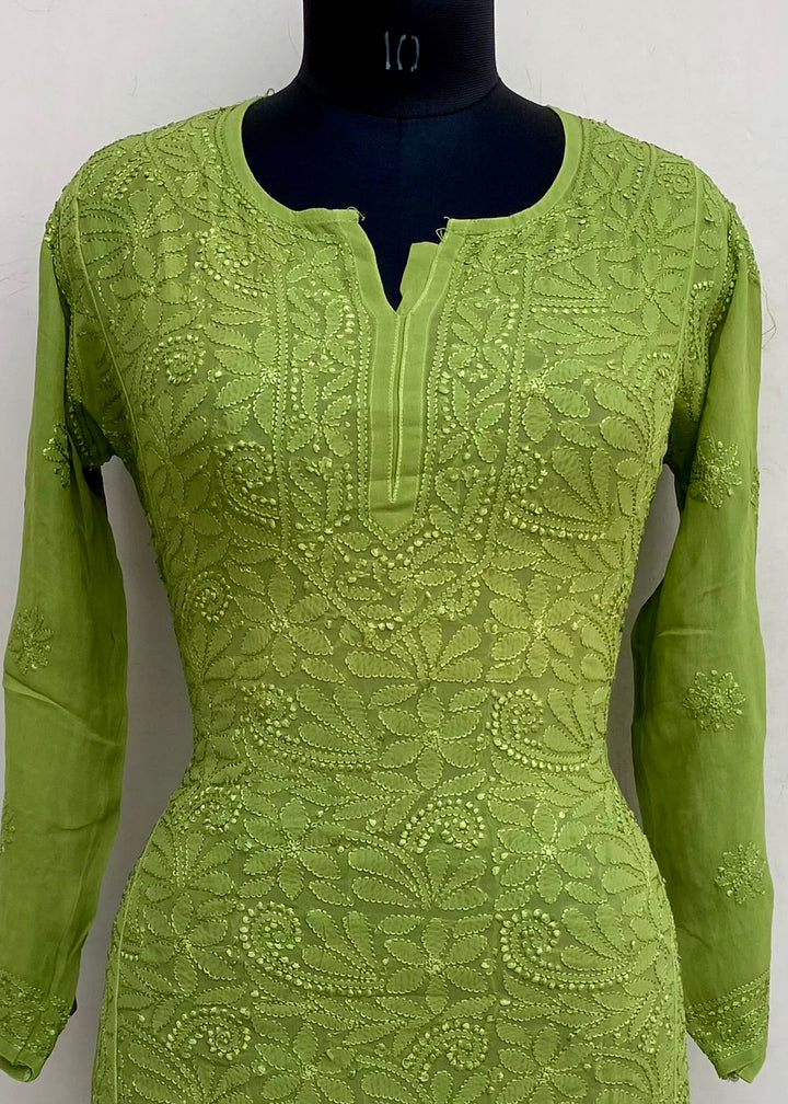 Lucknowi Chikankari Kurti Green Pure Georgette With Resham & Self Work