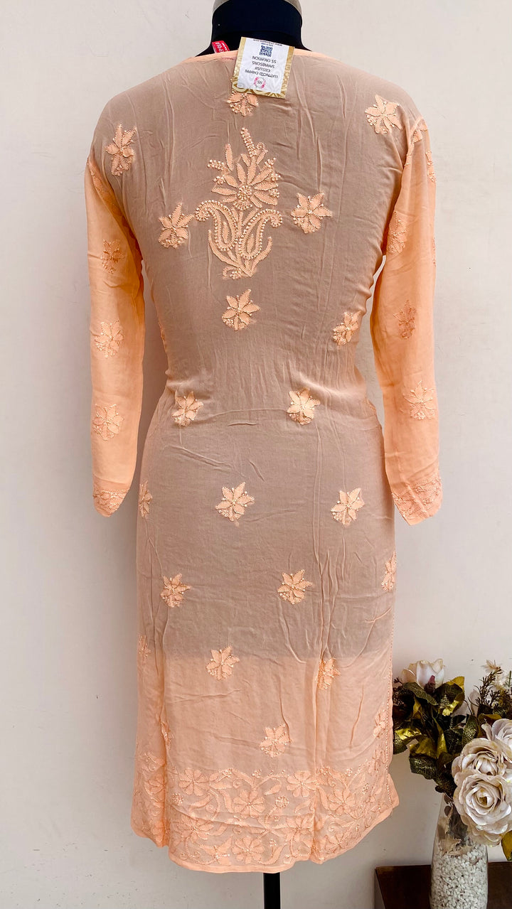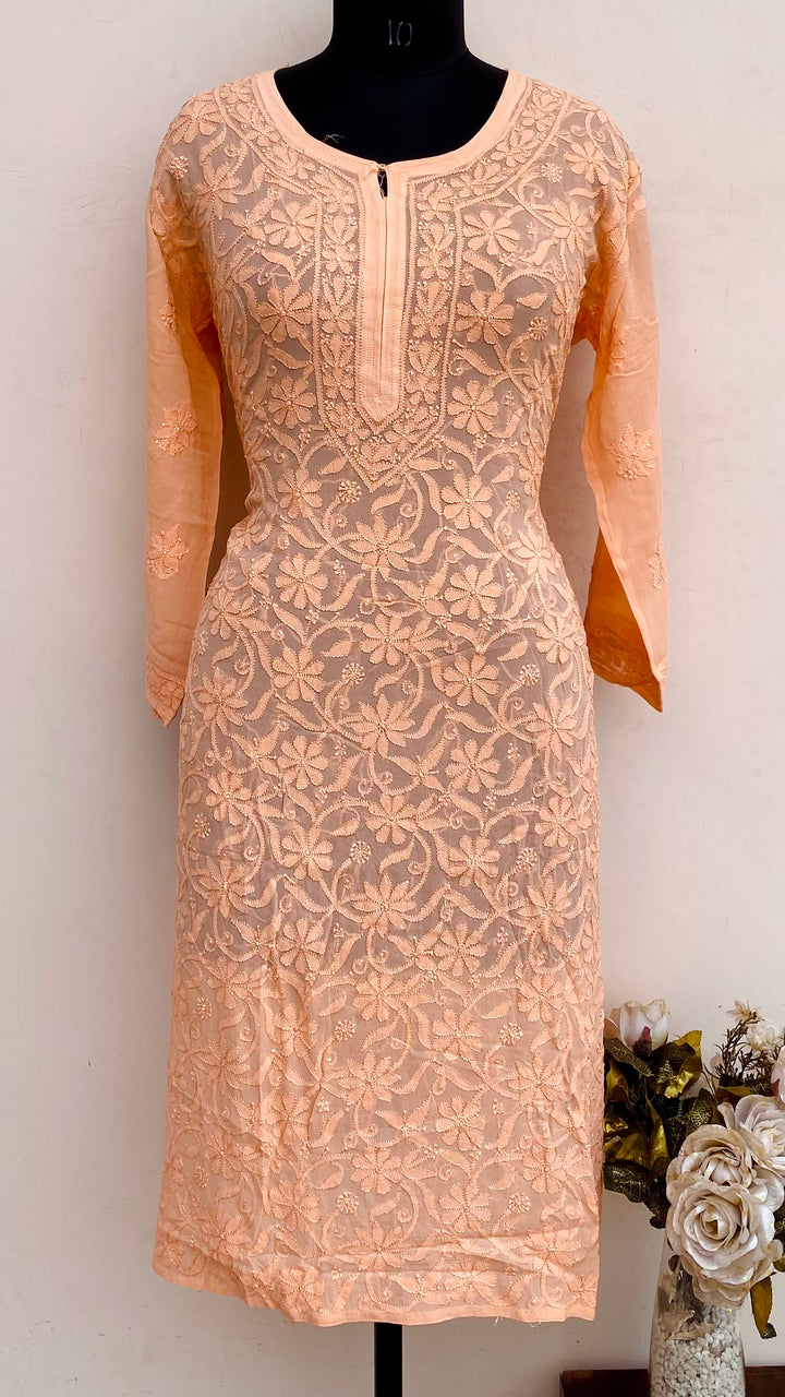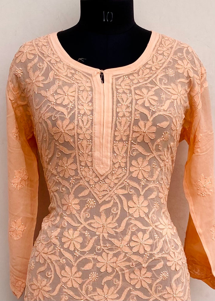 Lucknowi Chikankari Kurti Peach Pure Georgette With Resham & Self Work