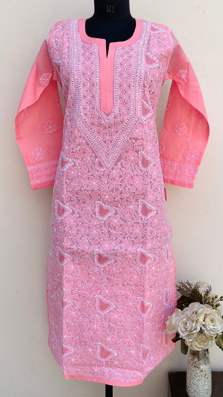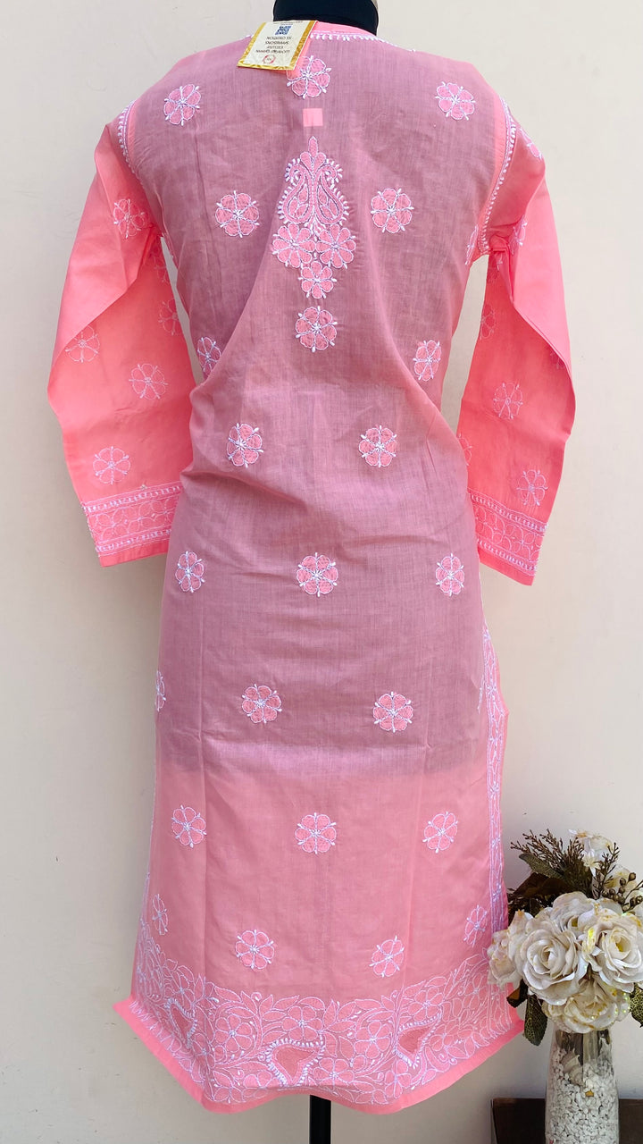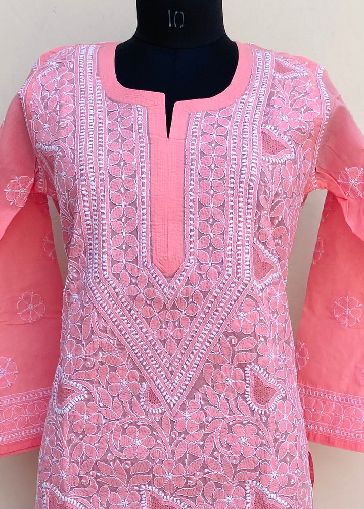 Lucknowi Chikankari Kurti Pink Cotton With Jaali Work