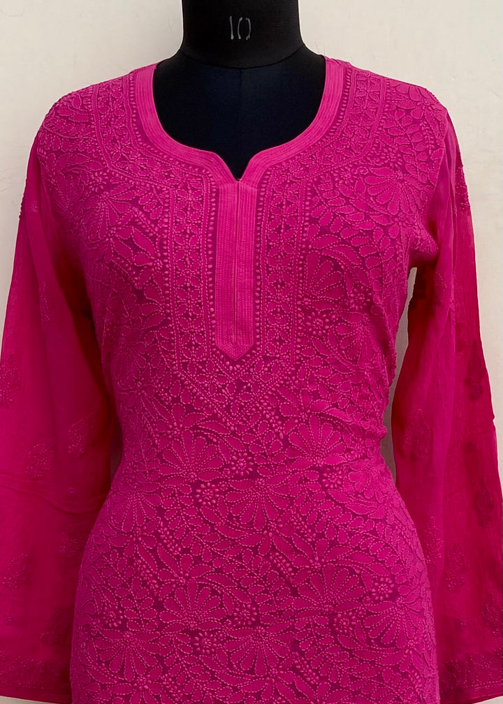 Lucknowi Chikankari Kurti Pink Pure Georgette With Self Work