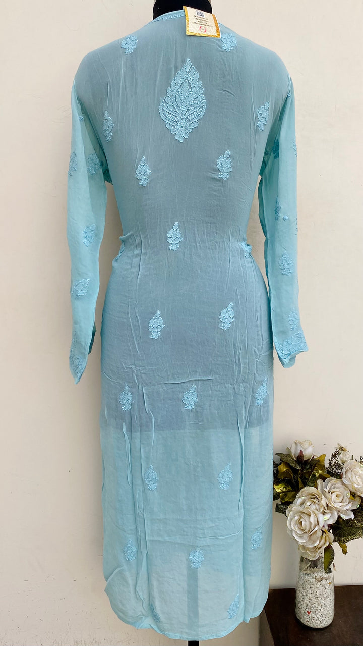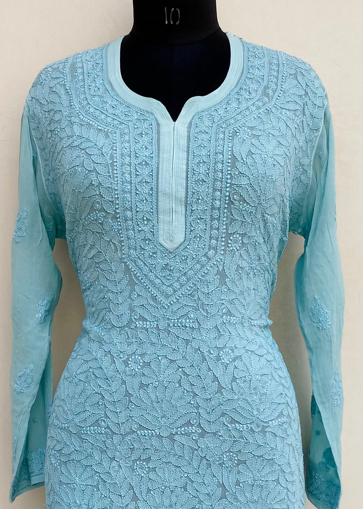 Lucknowi Chikankari Kurti Powder Blue Pure Georgette With Self Work