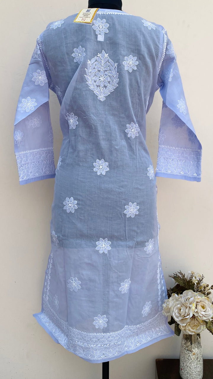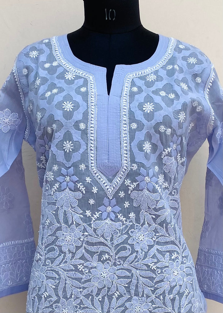Lucknowi Chikankari Kurti Purple Cotton With Applique Work