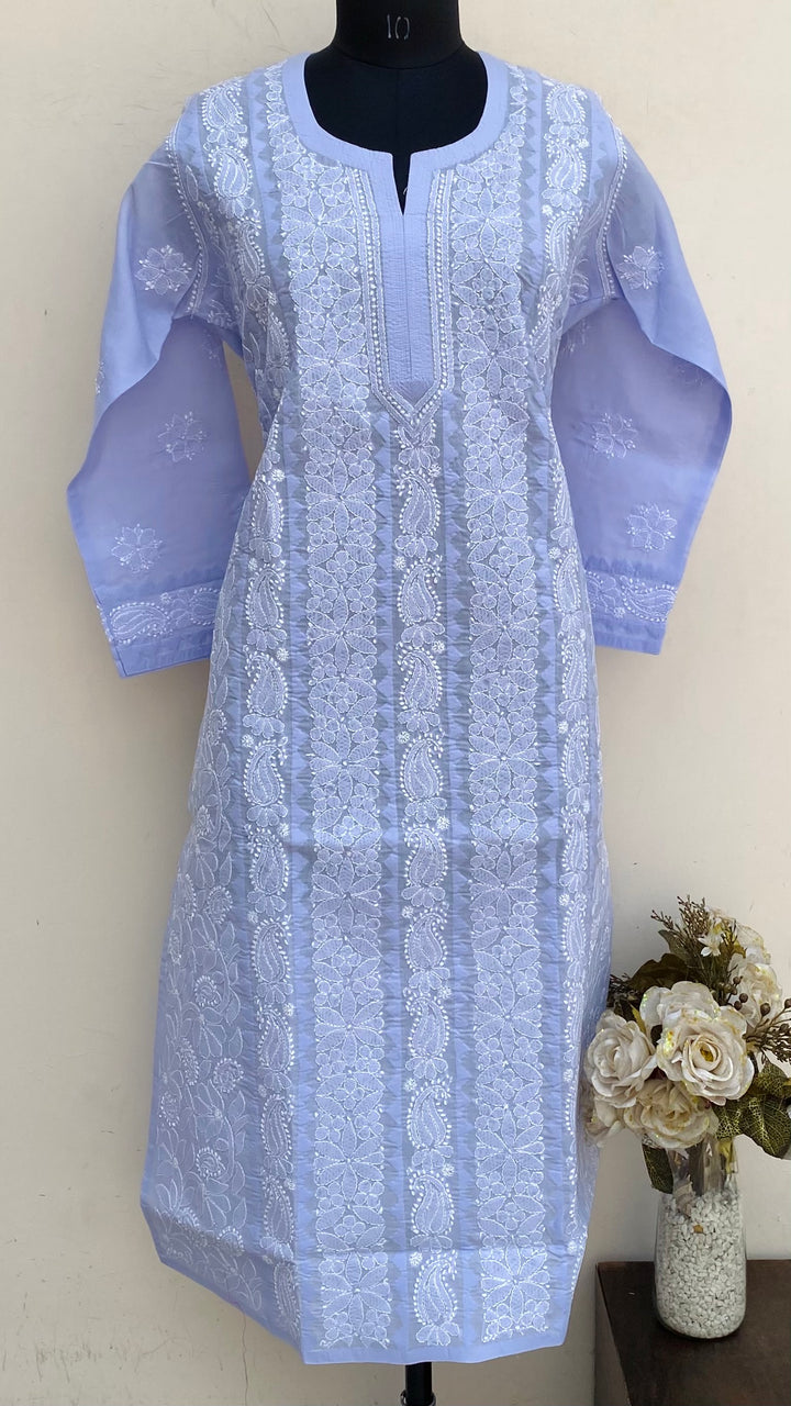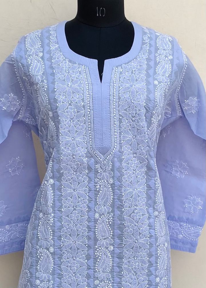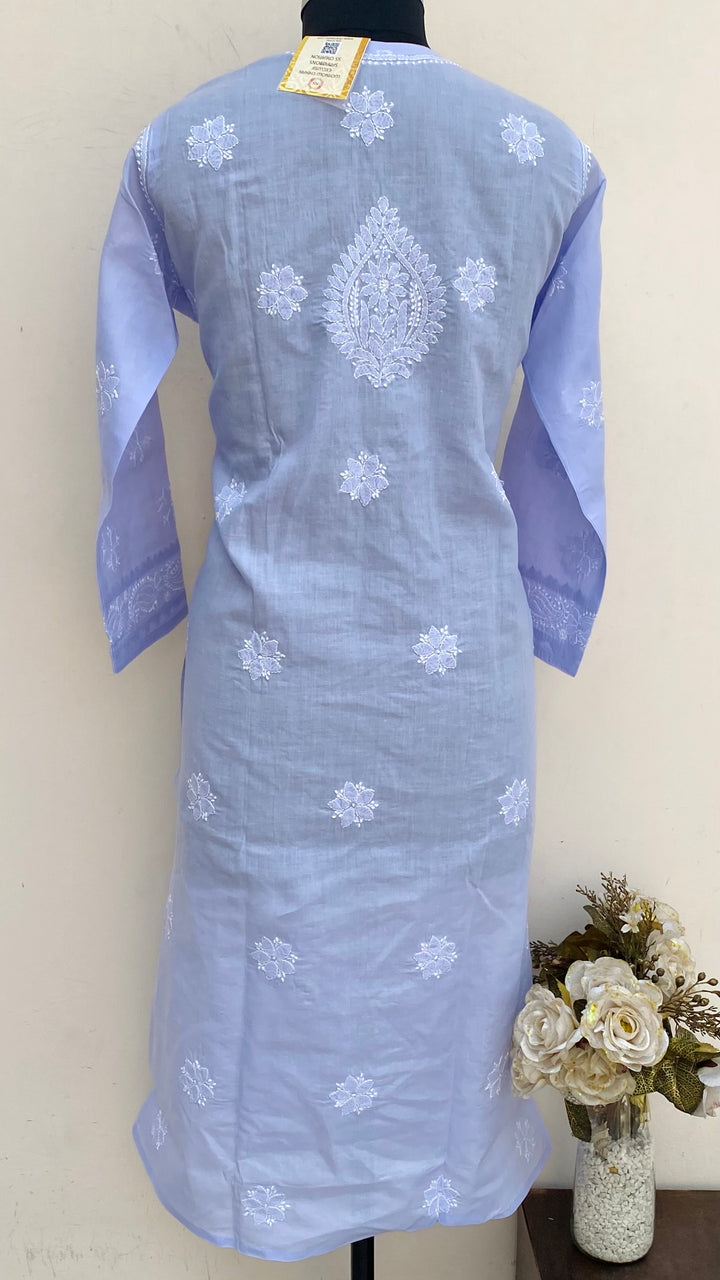 Lucknowi Chikankari Kurti Purple Cotton With Applique Work