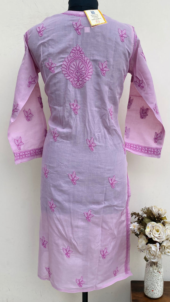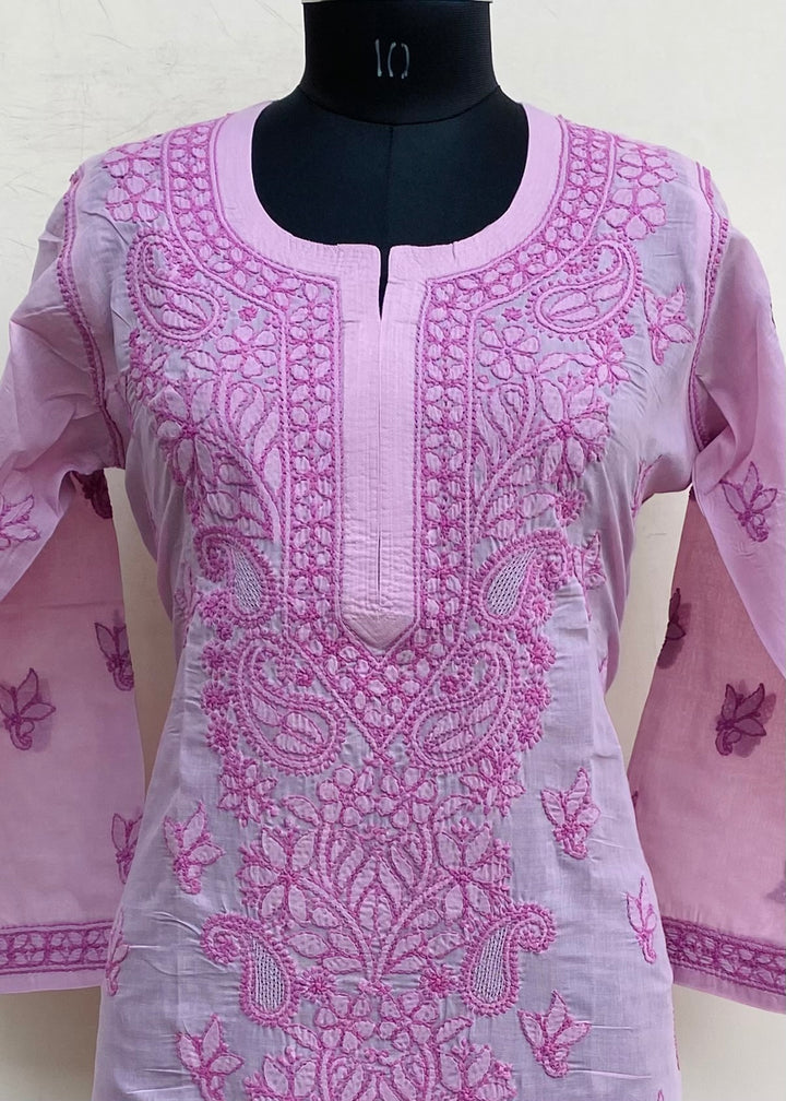 Lucknowi Chikankari Kurti Purple Cotton With Jaali Work