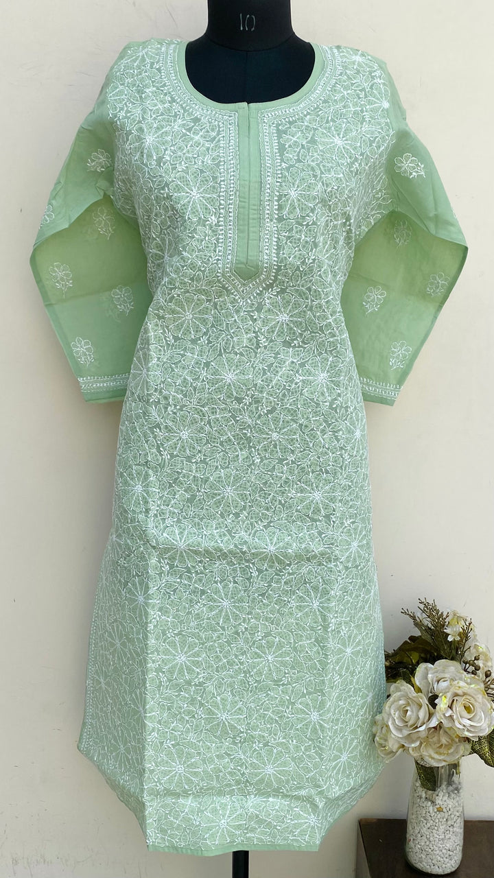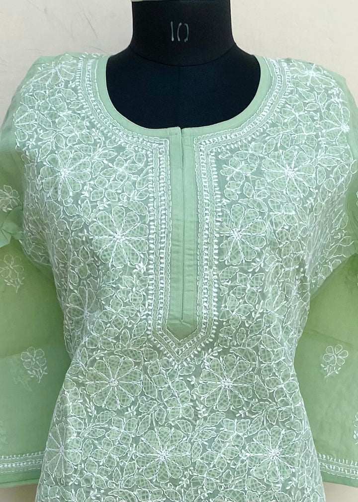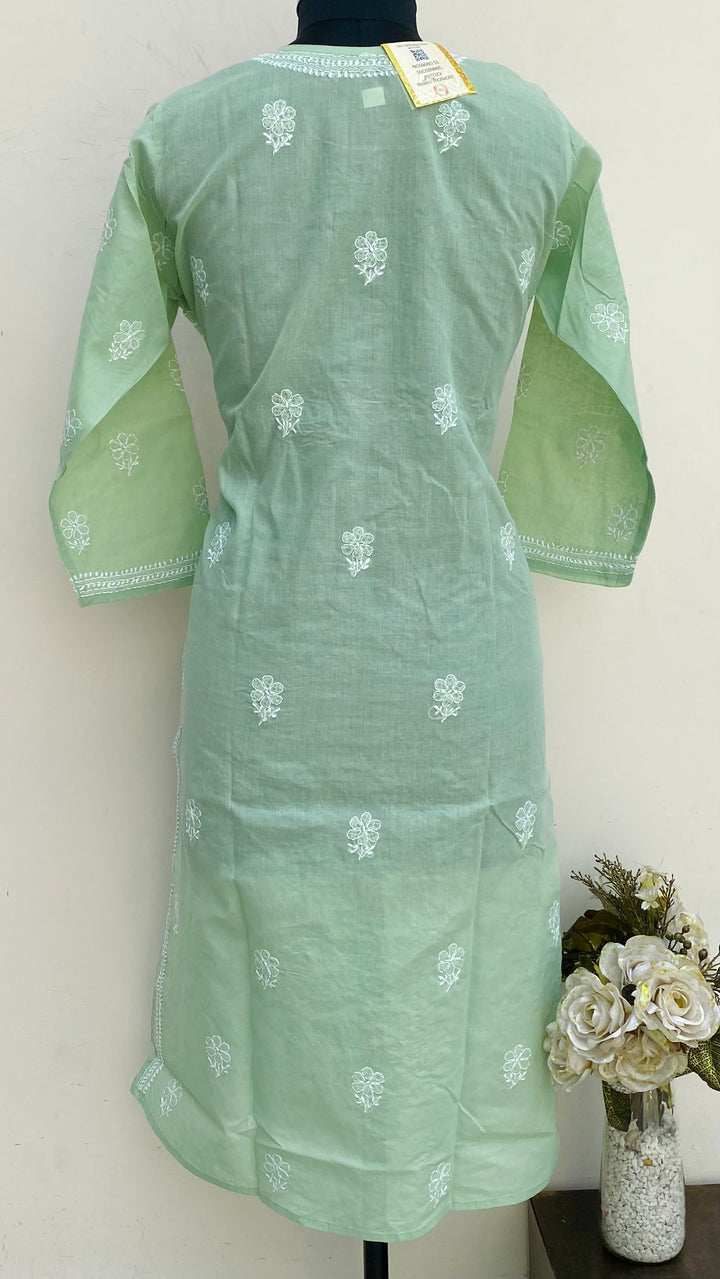 Lucknowi Chikankari Kurti Teal Green Cotton