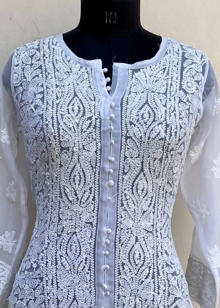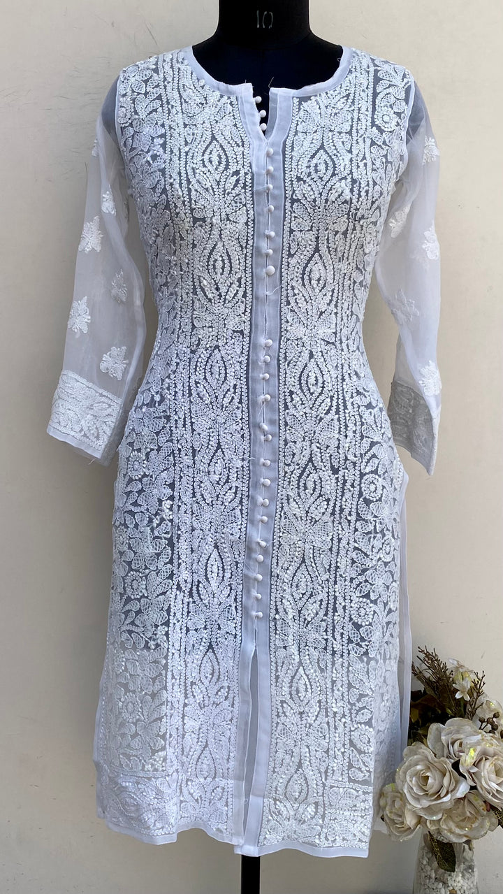 Lucknowi Chikankari Kurti White Georgette