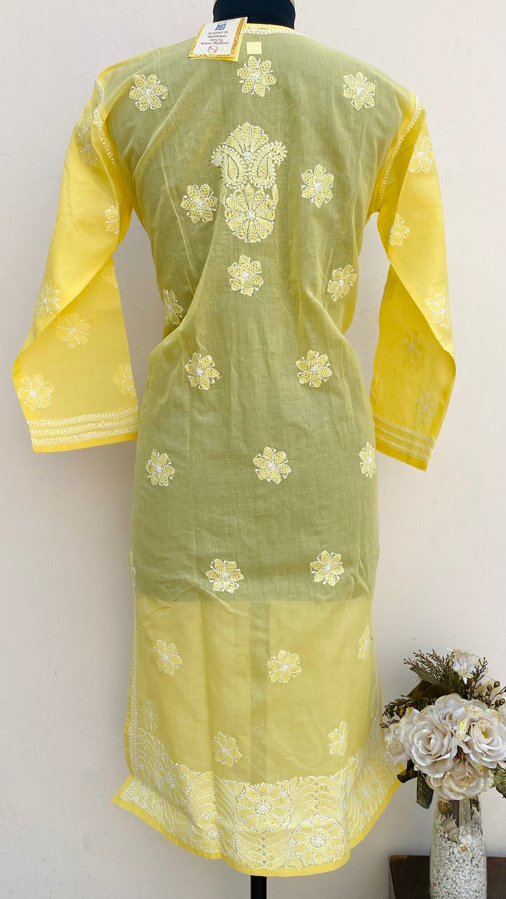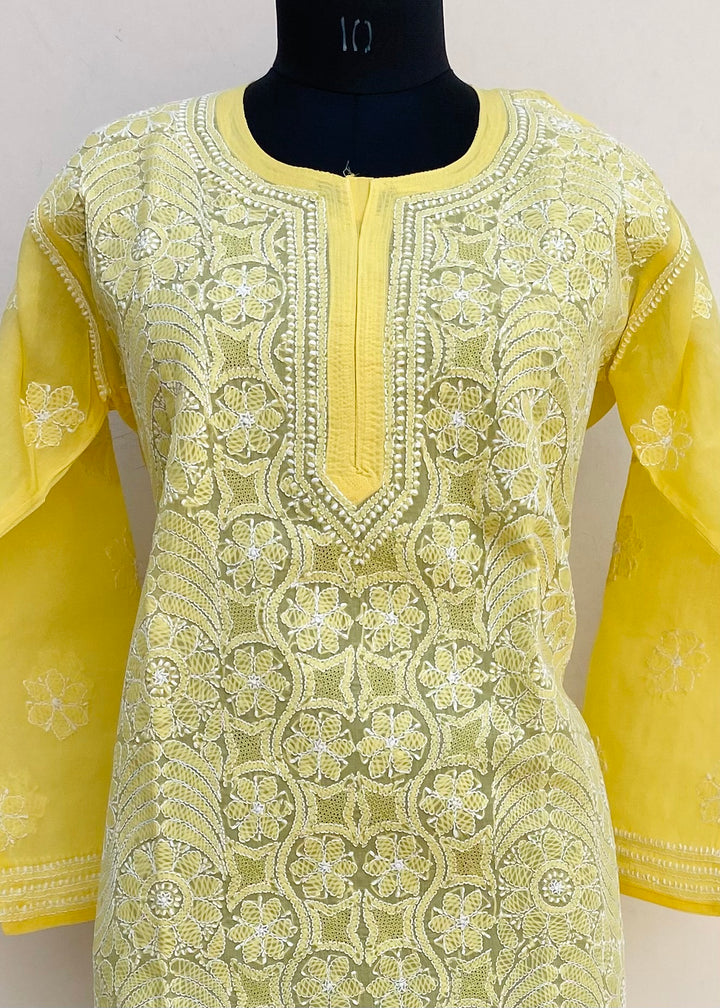 Lucknowi Chikankari Kurti Yellow Cotton With Jaali Work