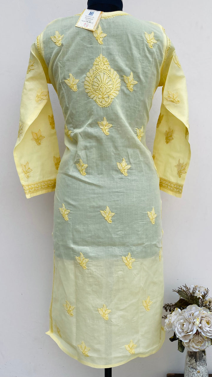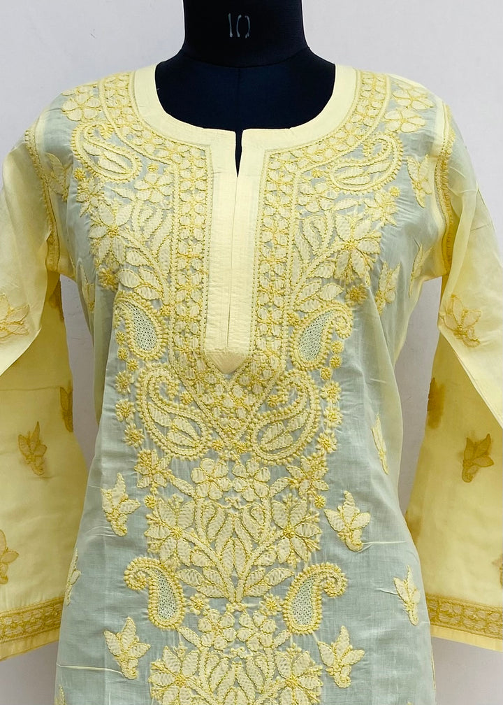 Lucknowi Chikankari Kurti Yellow Cotton With Jaali Work