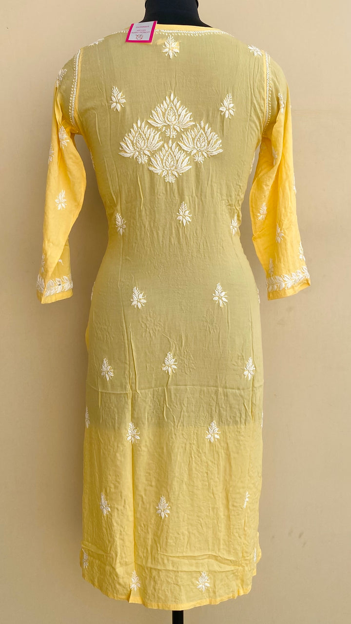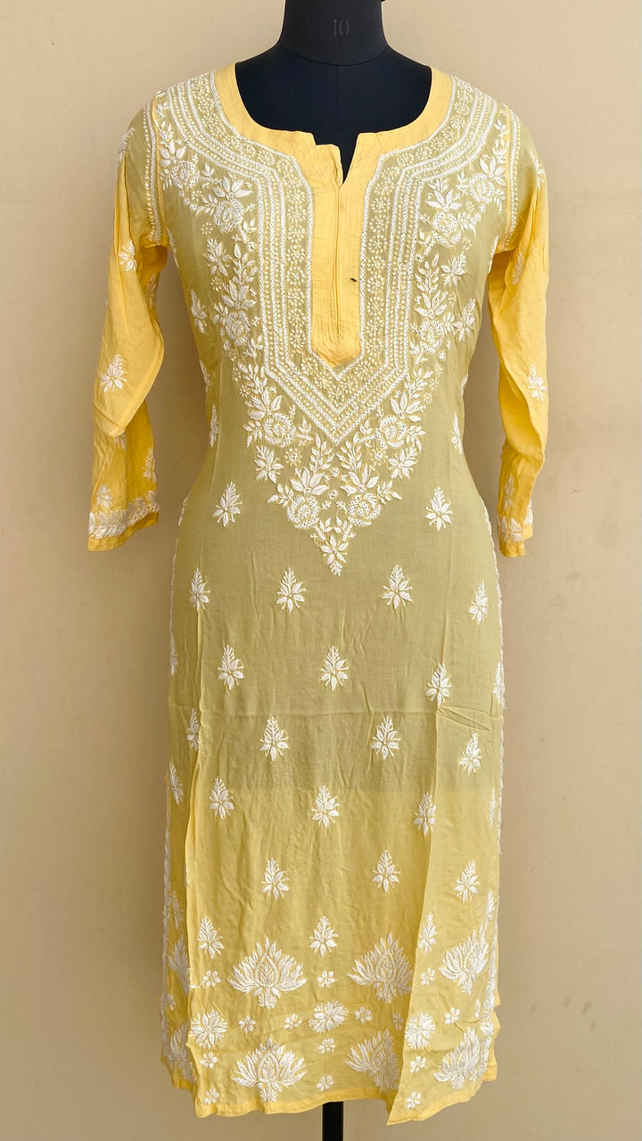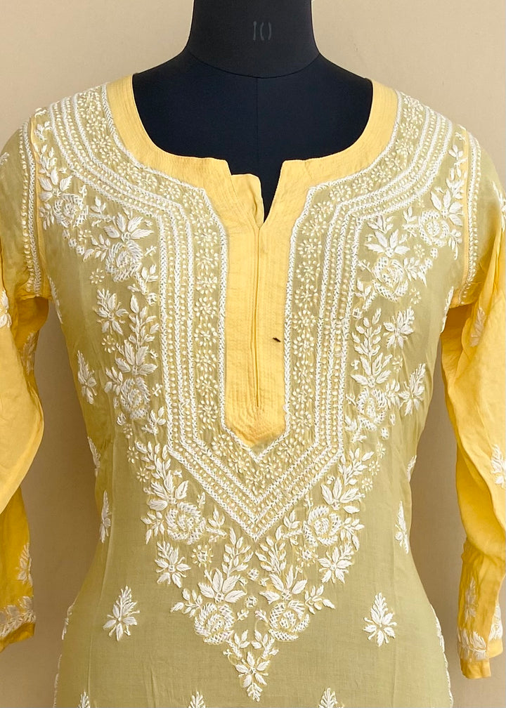 Lucknowi Chikankari Kurti Yellow Modal Cotton