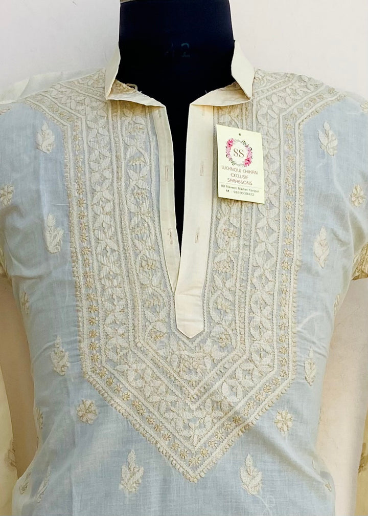 Lucknowi Chikankari Men’s Kurta Beige Cotton