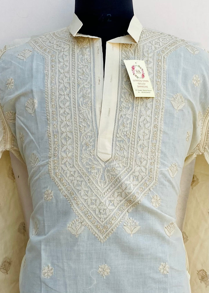 Lucknowi Chikankari Men’s Kurta Beige Cotton