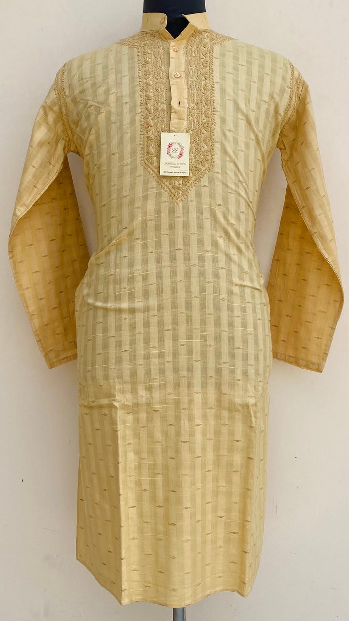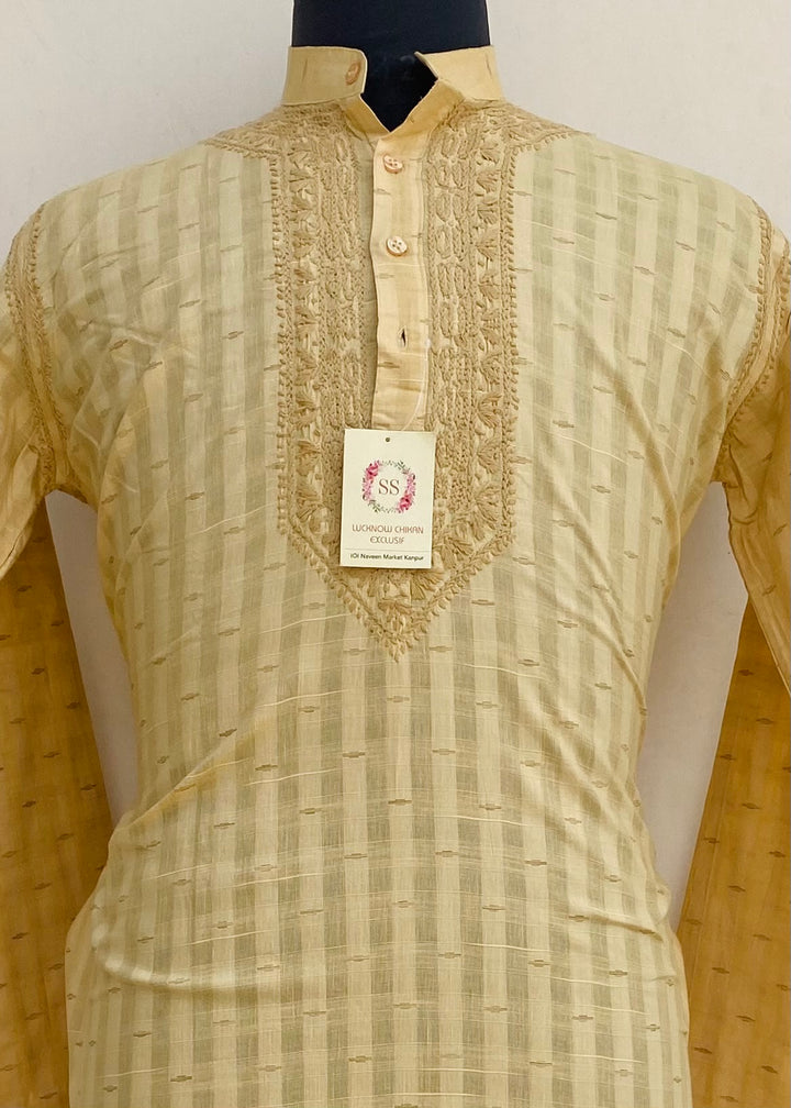 Lucknowi Chikankari Men’s Kurta Beige Cotton