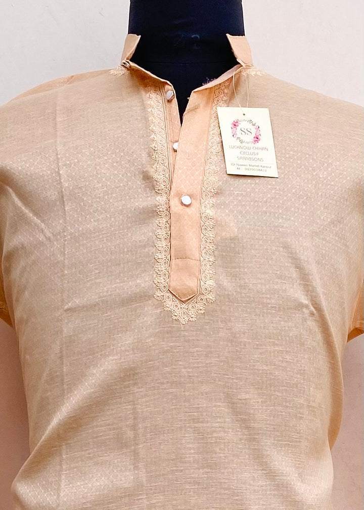 Lucknowi Chikankari Men’s Kurta Beige Cotton