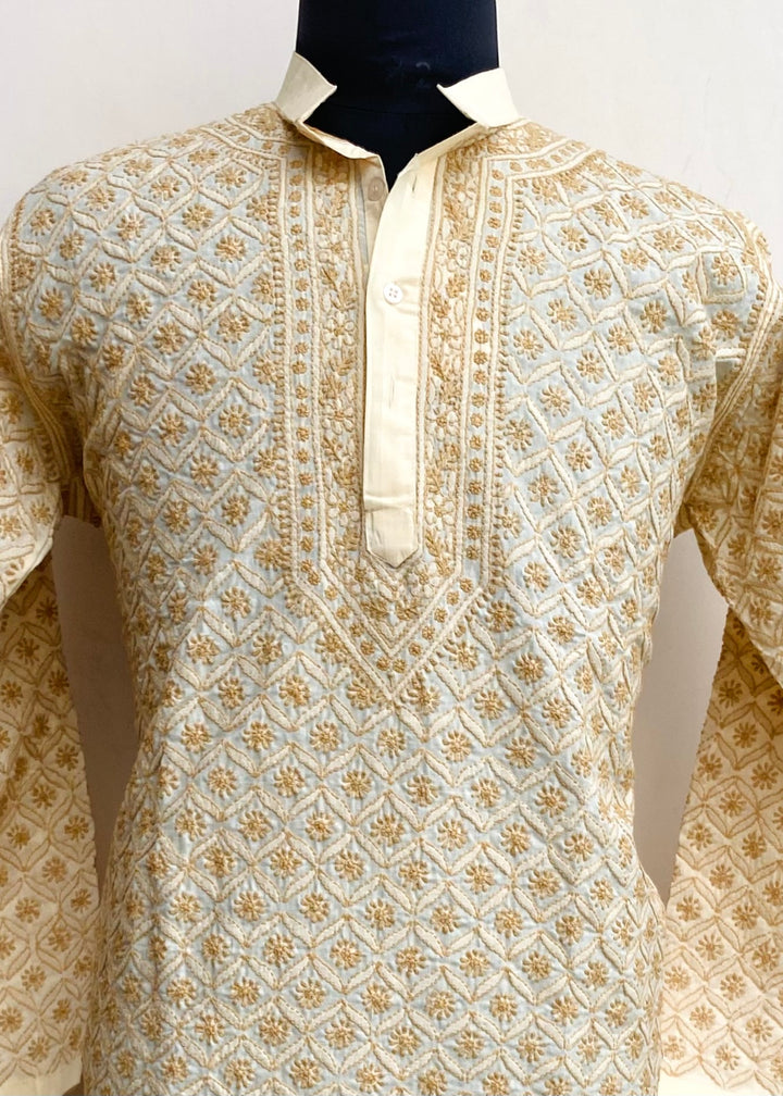 Lucknowi Chikankari Men’s Kurta Beige Cotton