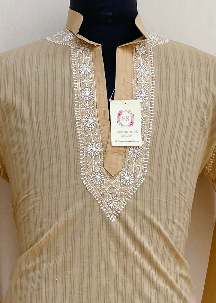 Lucknowi Chikankari Men’s Kurta Beige Cotton