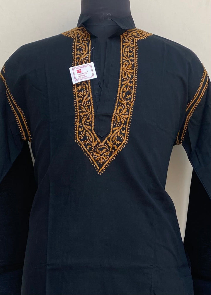 Lucknowi Chikankari Men’s Kurta Black Cotton