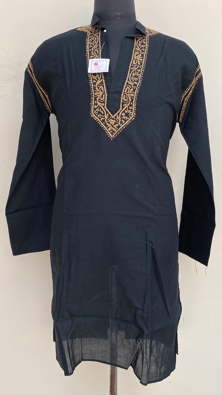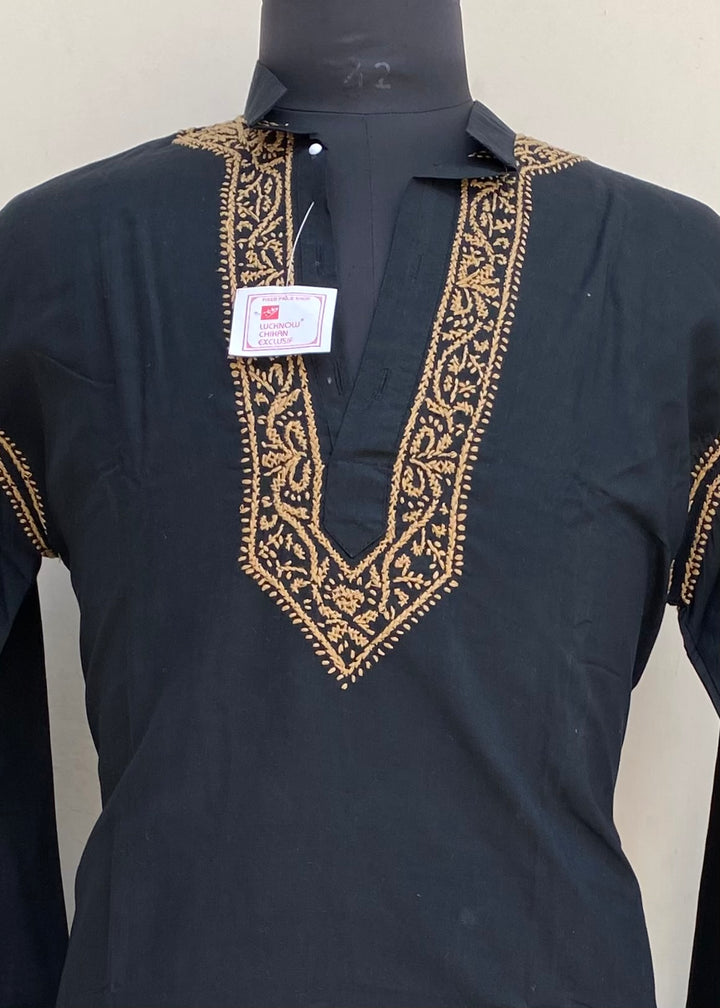 Lucknowi Chikankari Men’s Kurta Black Cotton