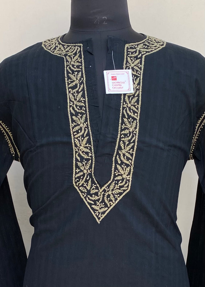 Lucknowi Chikankari Men’s Kurta Black Cotton