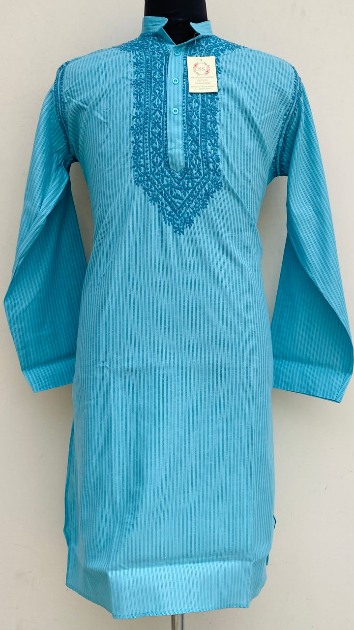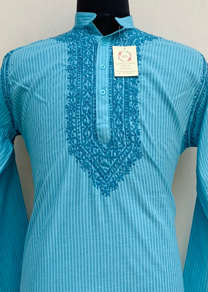 Lucknowi Chikankari Men’s Kurta Blue Cotton