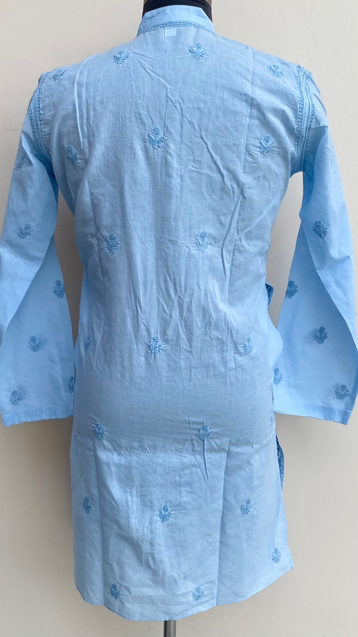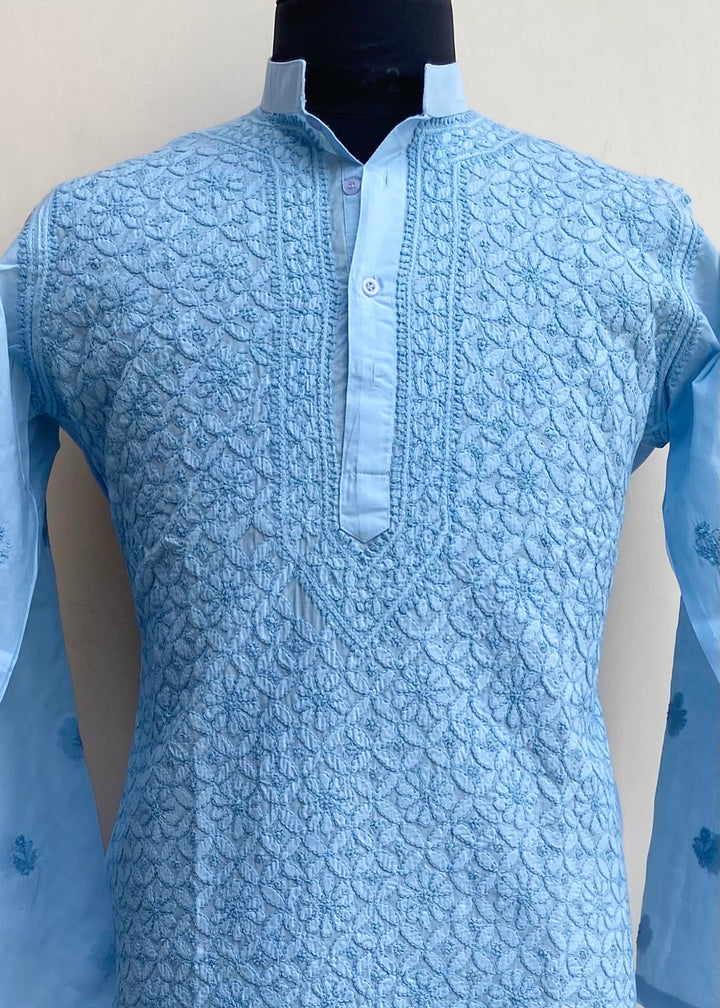 Lucknowi Chikankari Men’s Kurta Blue Cotton